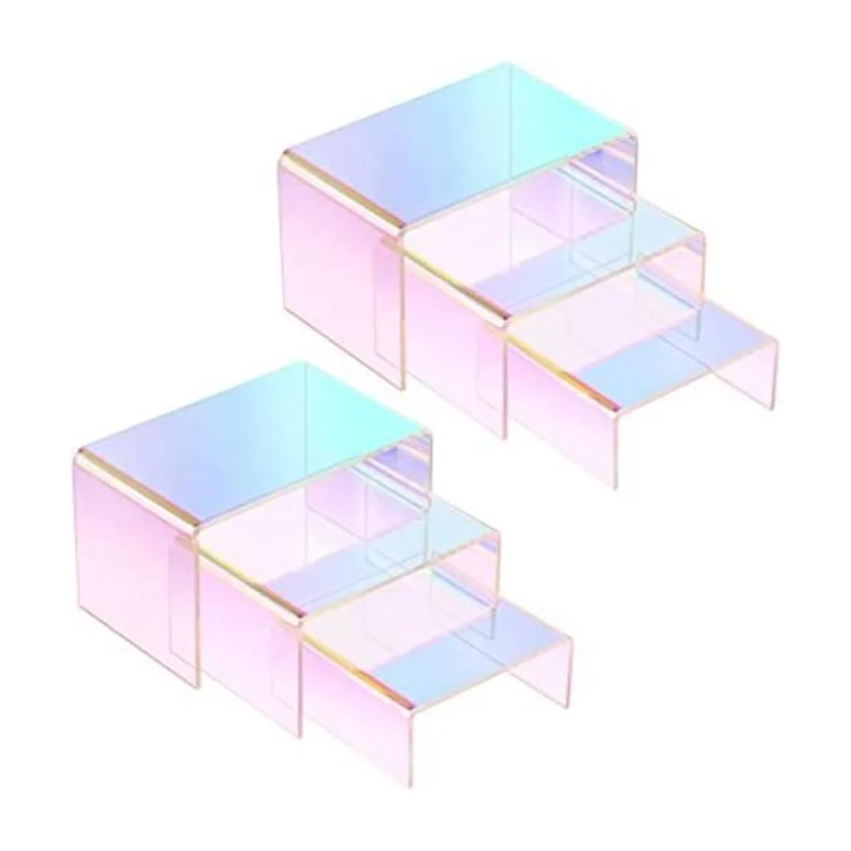 Paquete de 6 elevadores de exhibición de acrílico transparente de arcoíris grande con soporte de producto de 3 niveles rectangulares de mesa, exhibición de joyas, estante organizador para postres, cupcakes, dulces y golosinas, figura de acción mediano