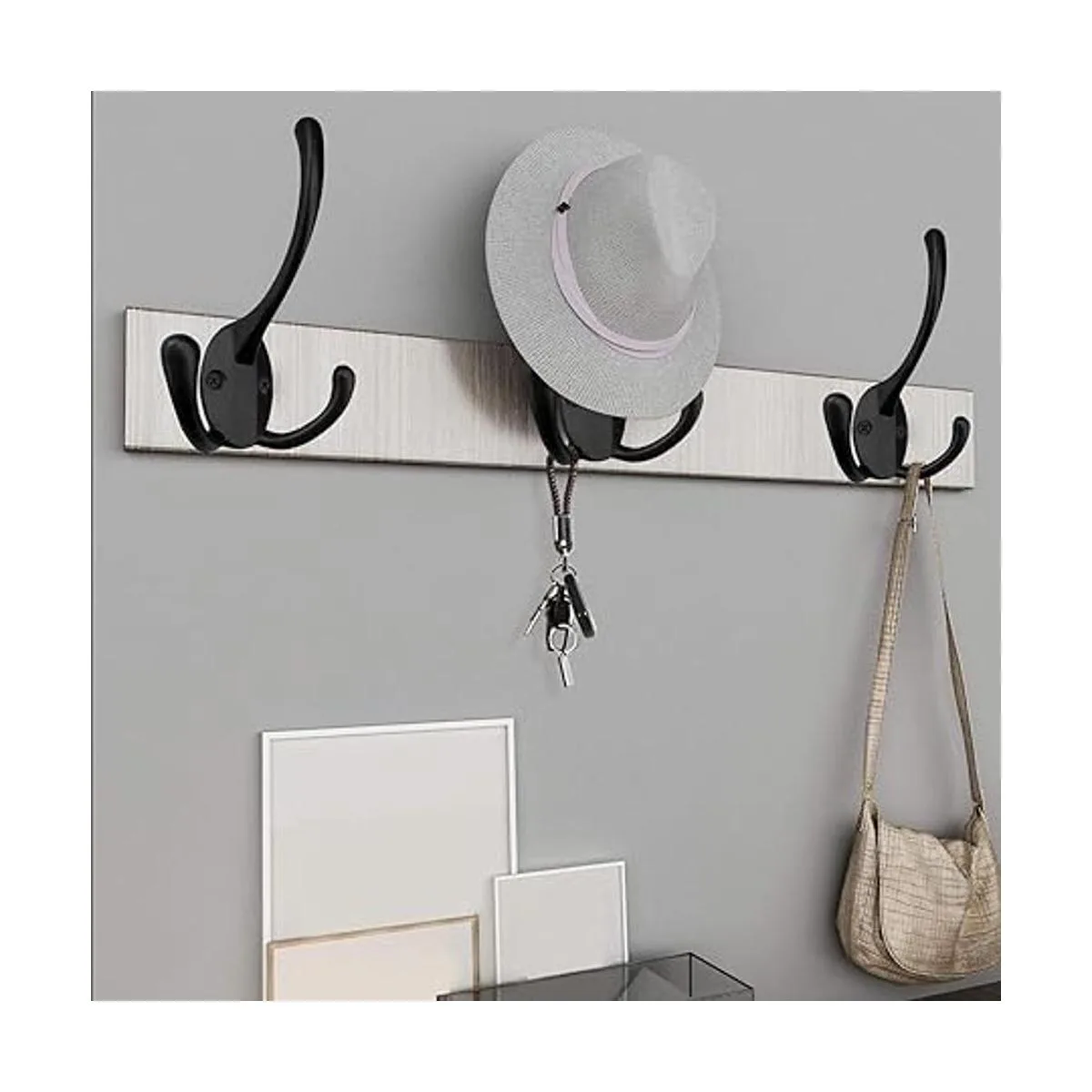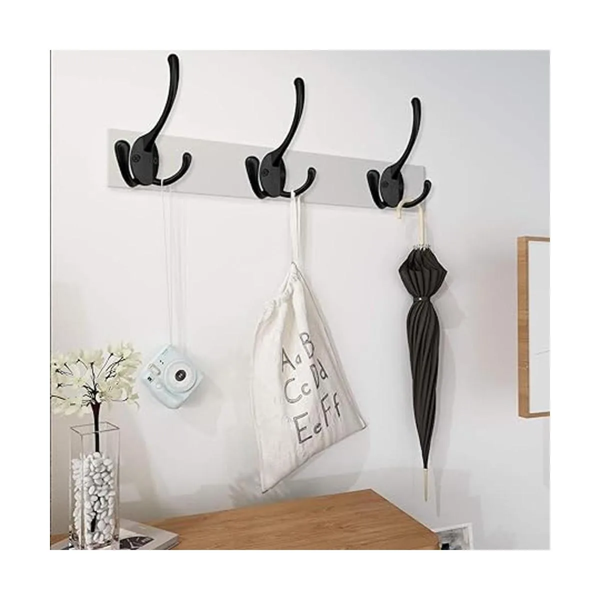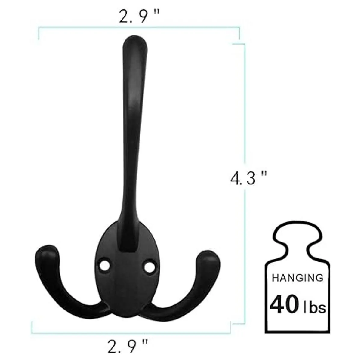 Material de alta calidad: estos grandes ganchos de tres puntas están hechos de material fundido de zinc de buena calidad, los tornillos están hechos de hierro, puede soportar fácilmente hasta 40 libras de peso. Duro y duradero, puede soportar ampliamente abrigos gruesos, mochilas escolares grandes, bufanda, paraguas, bolsa, toalla, llave, sombrero, taza, así como calcetines de Navidad y corona de Navidad