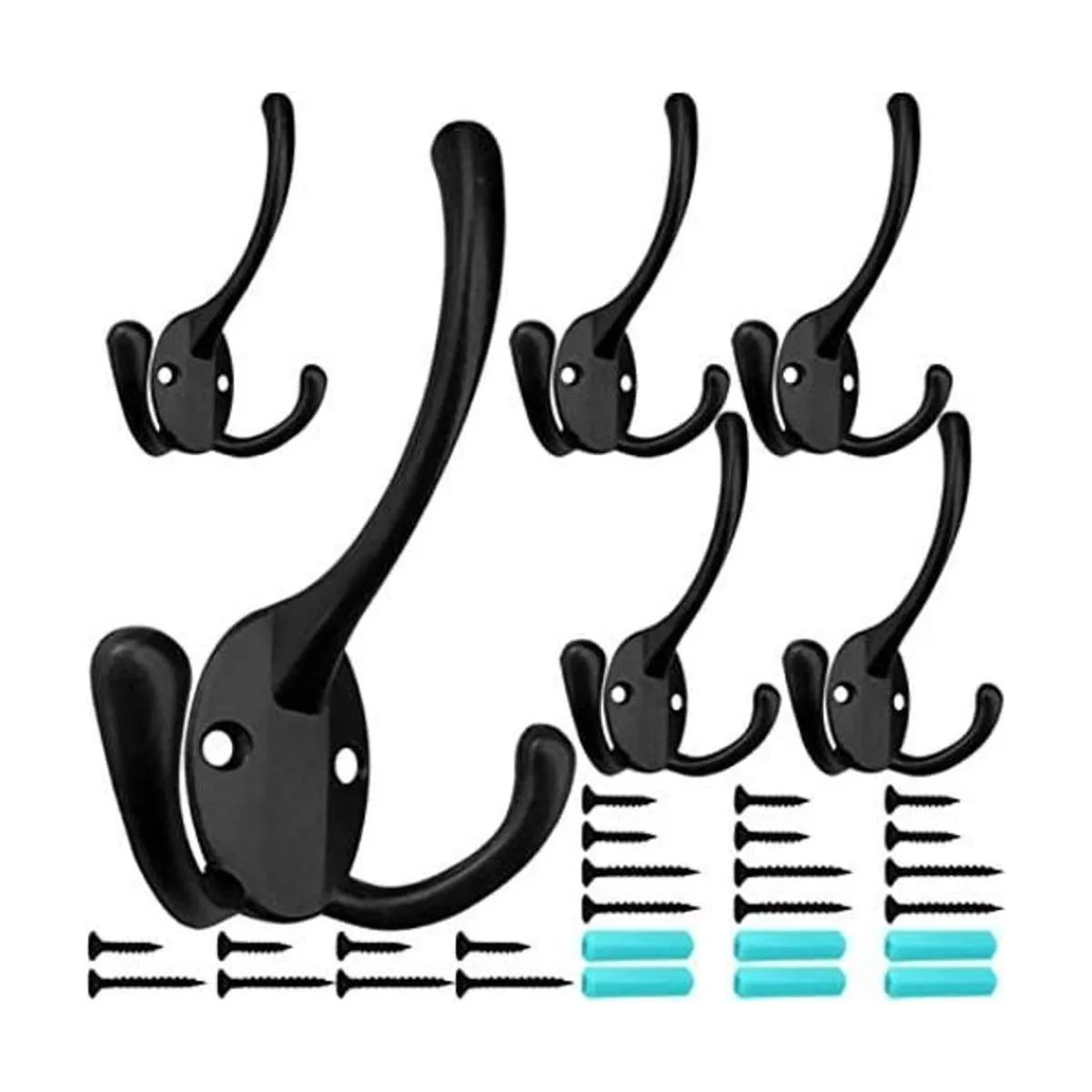 Paquete de 6 ganchos grandes y resistentes de tres puntas para colgar en la pared con 24 tornillos dos tipos de tornillos incluidos ganchos rústicos retro de doble utilidad para abrigo grueso, bolsas grandes pesadas paquete de 6