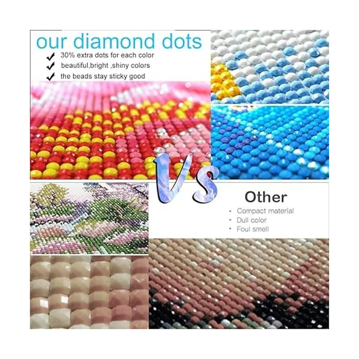 Símbolos claros: números y letras fáciles de leer. Los colores son brillantes y vibrantes, hermosa imagen. Nuestras pinturas de diamantes son de diseño manual, restauran la imagen original tanto como sea posible.