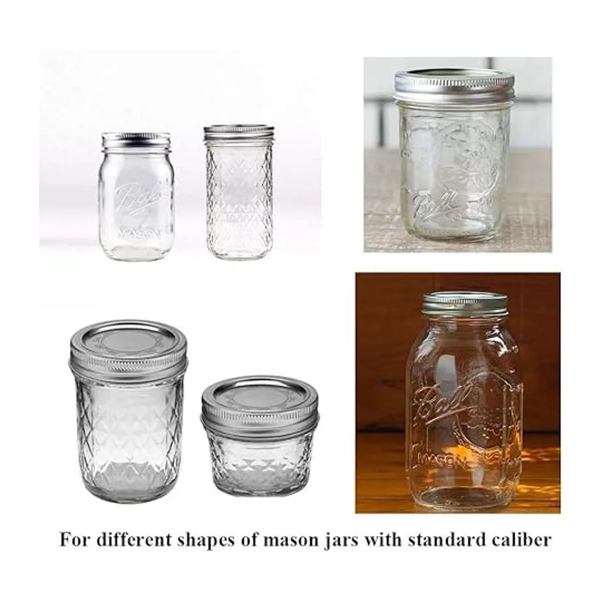 Boca estándar impermeable: la tapa del tarro Mason incluye junta impermeable para una mejor impermeabilidad. Se adapta a todos los tarros de conserva de boca regular. Ideal para jardín al aire libre, patio, terraza, boda, fiestas de Navidad.