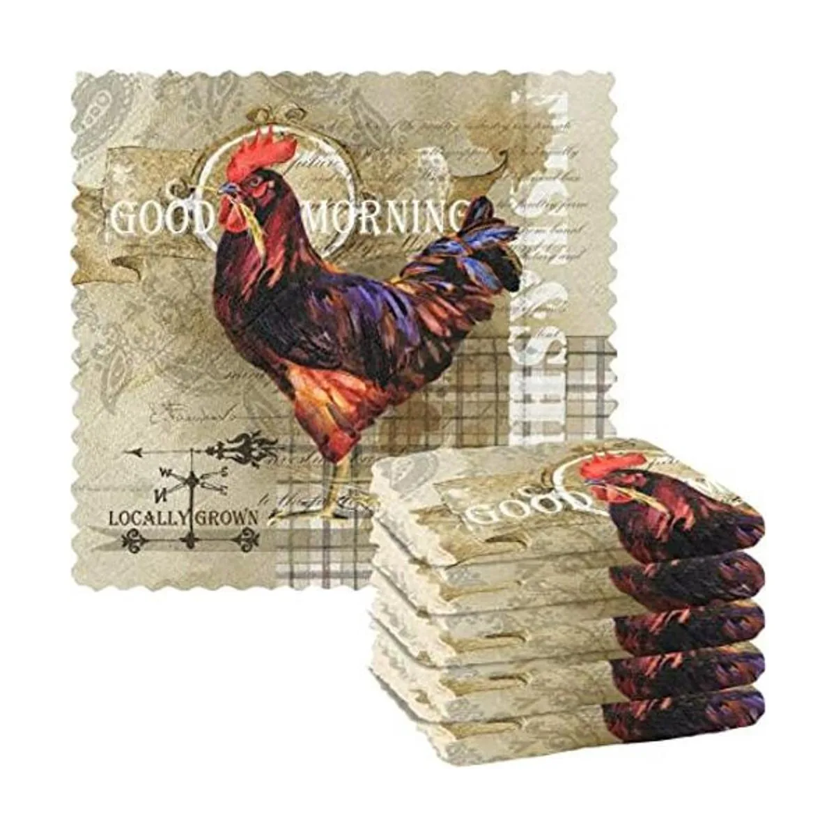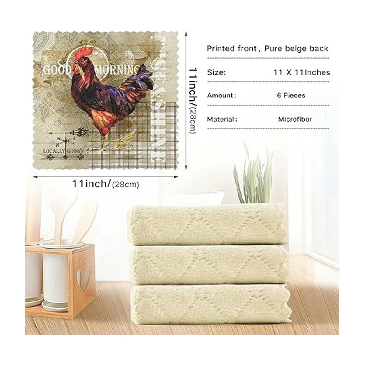 Paquete de 6 paños de cocina para lavar platos, trapos de toalla de gallo vintage para encimeras de limpieza de cocina