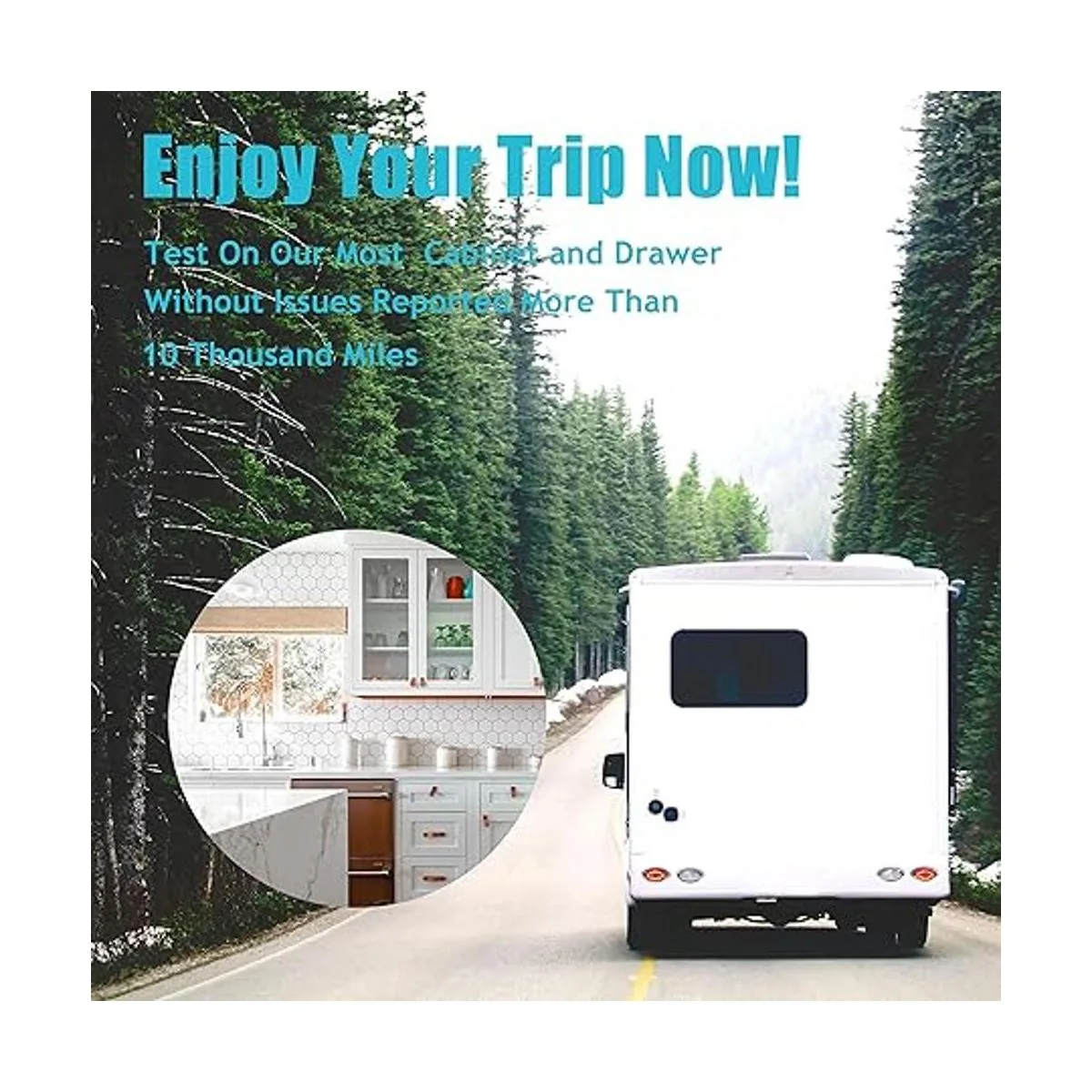 Resistente y duradero: hecho de ABS de alto impacto para todo tipo de clima, fácil de mantener las puertas cerradas firmemente con nuestros cierres con fuerza de tracción de 8 libras. Tienes que tirar de los cierres con más fuerza que nunca, porque nuestros cierres de cajón son más apretados que otros. Después de 10 miles de millas, no hay problemas reportados de nuestros cierres y capturas RV en la mayoría de armarios y cajones.