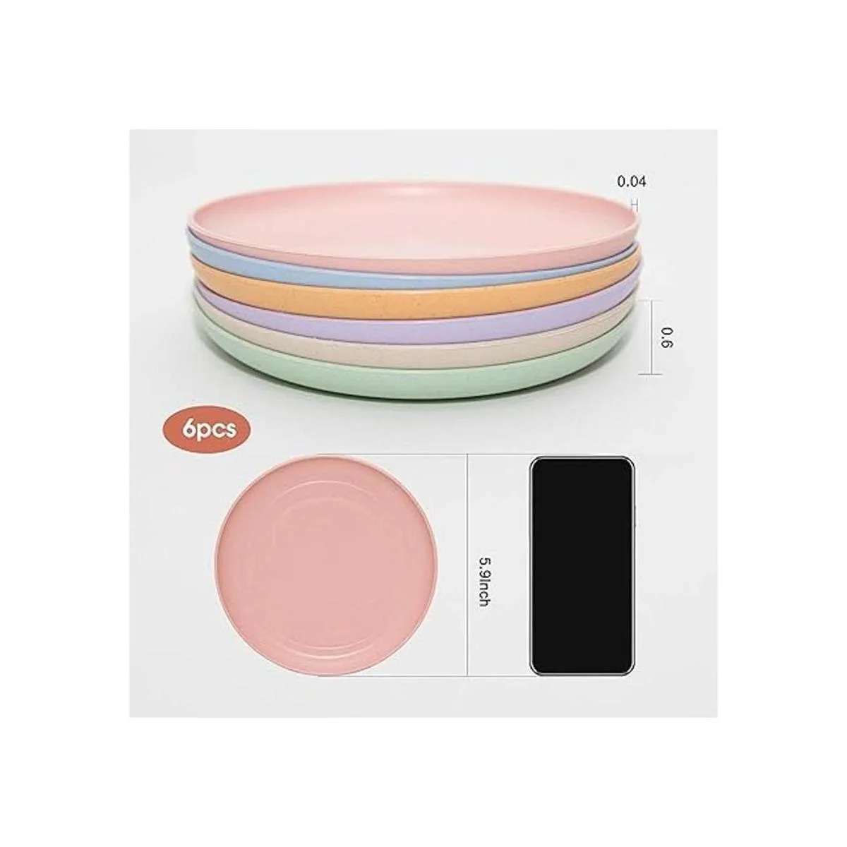 Paquete de 6 platos ligeros de paja de trigo de 6 pulgadas, reutilizables, aptos para lavavajillas y microondas, platos profundos irrompibles, platos de plástico reutilizables, son fáciles de limpiar sin BPA