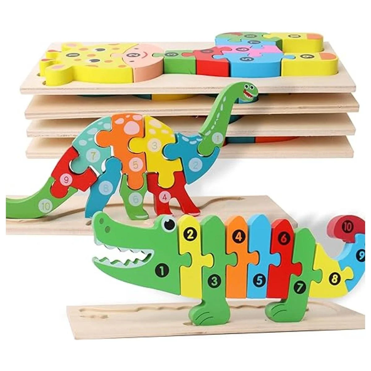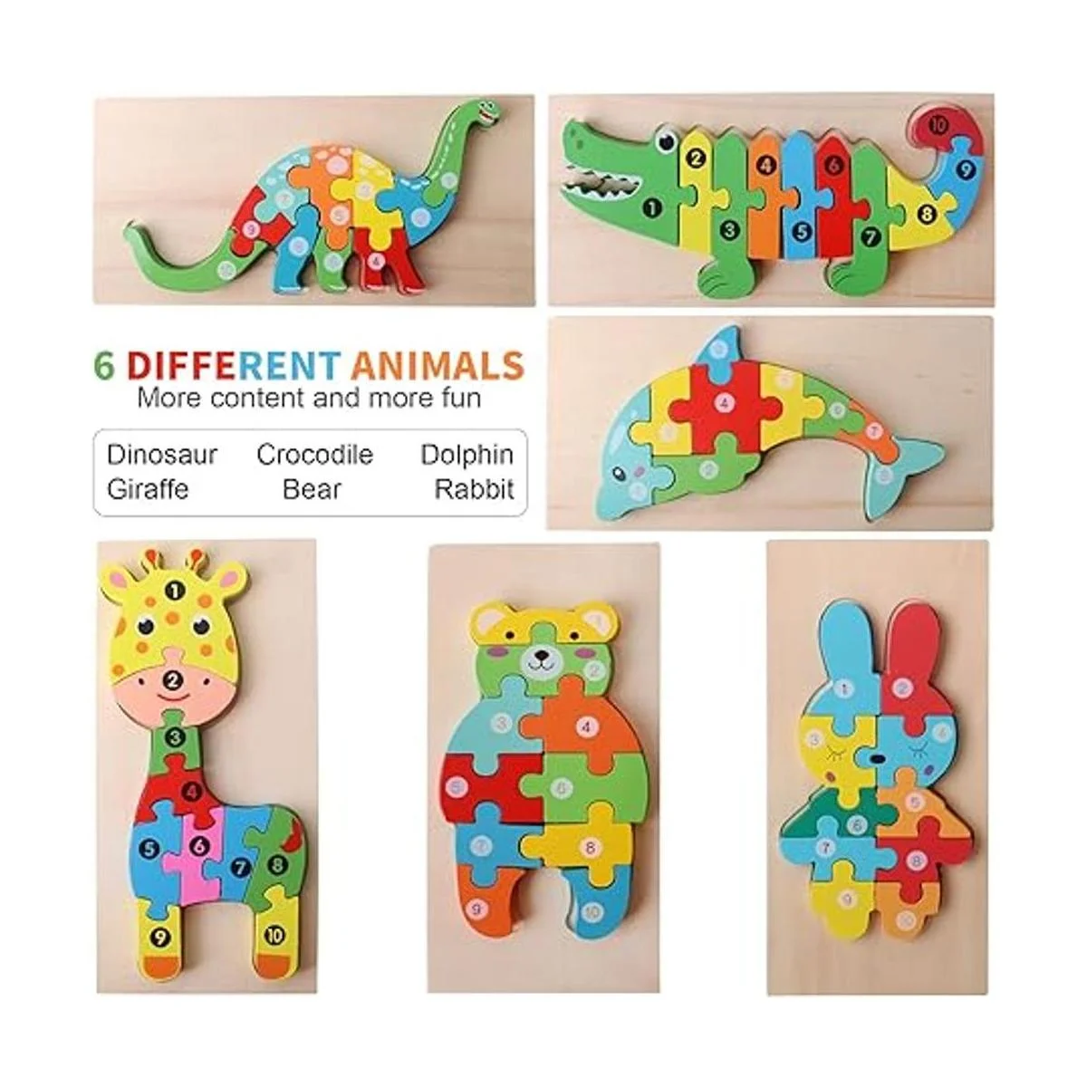 Rompecabezas de 6 piezas de juguetes de educación temprana: incluyendo conejos, jirafas, osos, dinosaurios, cocodrilos y delfines. Los rompecabezas infantiles con colores brillantes y formas bonitas pueden atraer la atención de los niños. Ayuda a los niños pequeños a entender varios bosques y animales marinos, y mejorar su comprensión y habilidades cognitivas de números, colores y formas.