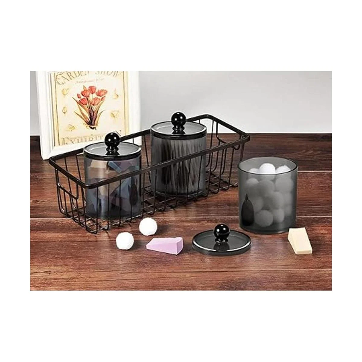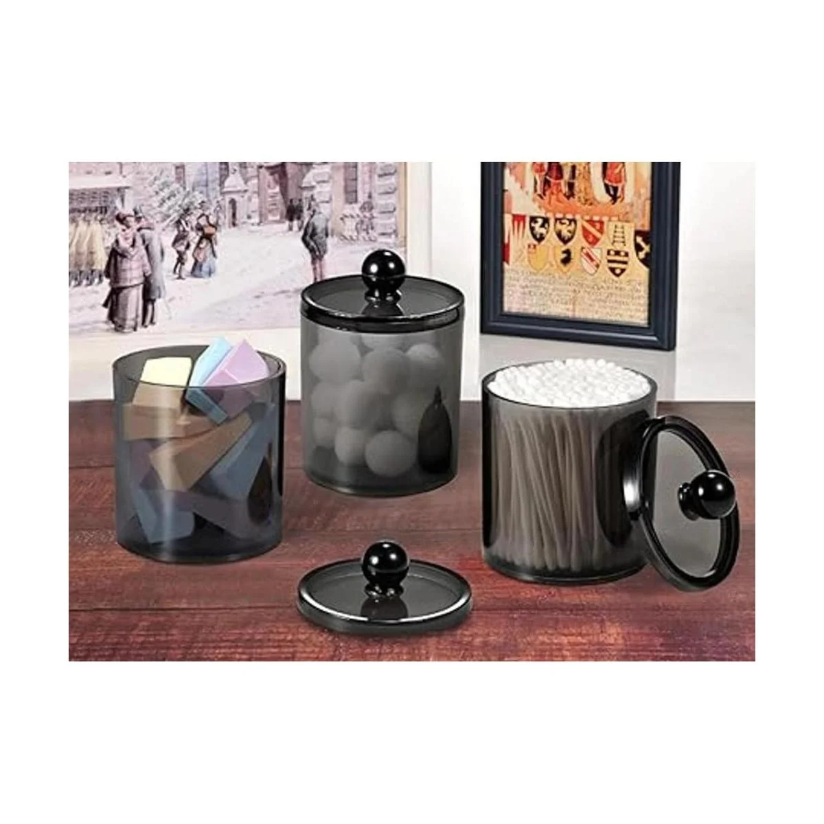 Hacer que el hogar sea un mejor espacio: los recipientes también son tarros de plástico negro, diseño moderno, funcional pero decorativo, no solo para el baño, también perfectos en la cocina, dormitorio o sala de manualidades. Especialmente perfectos para usar en algunos espacios estrechos, como estantes flotantes, tocador de baño pequeño o encimera