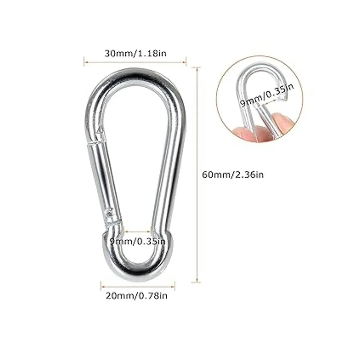 Paquete de 60 ganchos a presión de resorte, M6 x 238 pulgadas, mosquetón para llavero, capacidad de carga de 290 libras, ganchos de hamacas de acero galvanizado con eslabones rápidos para campamento, senderismo, columpio y correa de mascotas