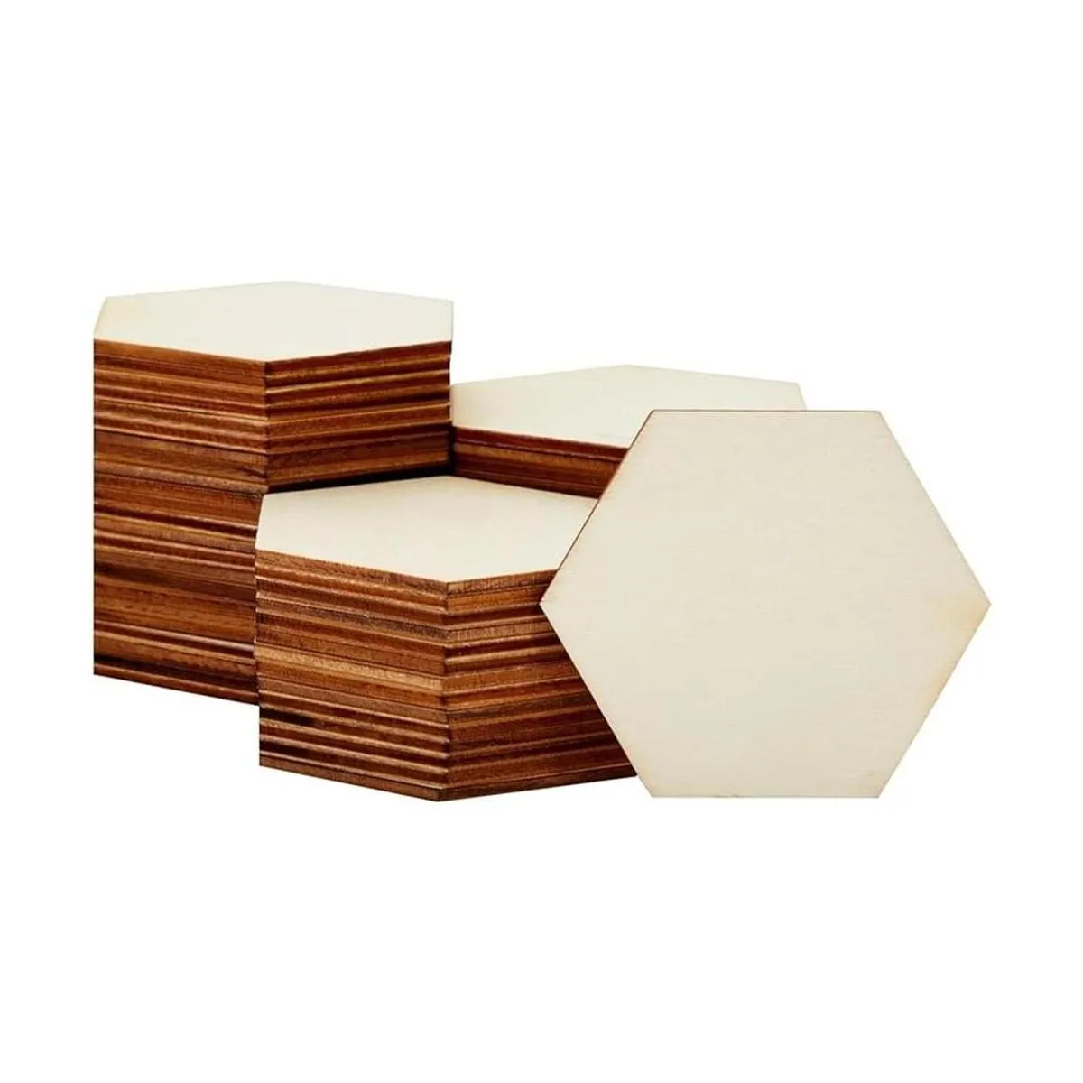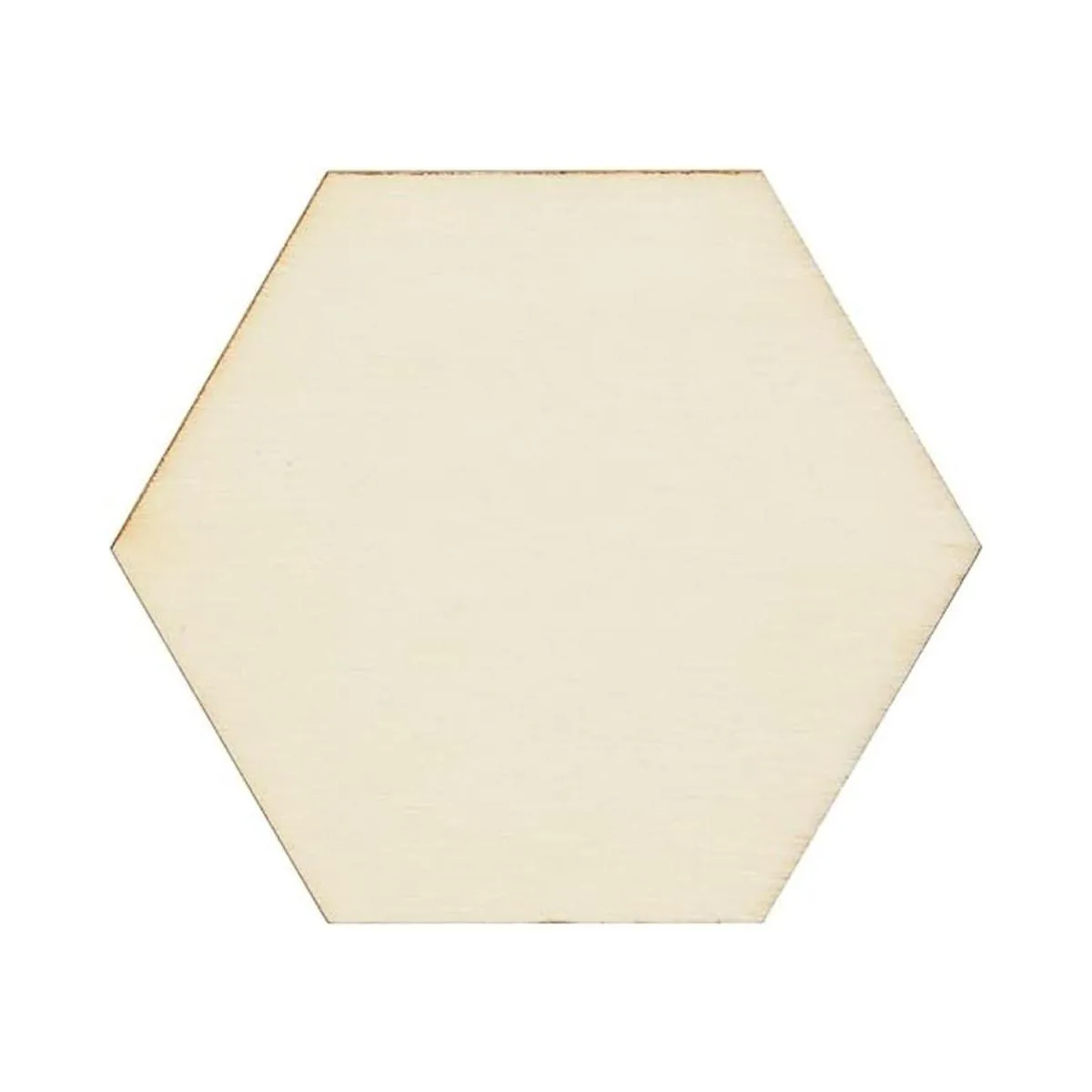 Paquete de 60 piezas hexagonales de madera sin terminar para manualidades, recortes de 3 pulgadas para quemar madera, pintura, decoración de pared
