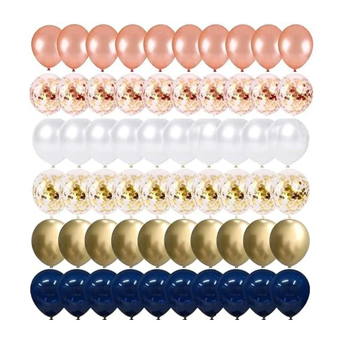 Paquete de 68 globos de látex de confeti color azul marino, globos de cumpleaños de 12 pulgadas con cinta de globos de 65 pies para decoración de fiesta de cumpleaños, boda, graduación, despedida de soltera