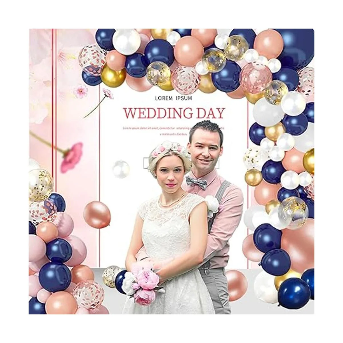 Material de alta calidad: los globos gruesos con temática de oro rosa azul marino de 12 pulgadas están hechos de látex natural de alta calidad, disipan el olor rápidamente. Los globos llegarán planos y aún no se inflan, se pueden llenar con helio o aire