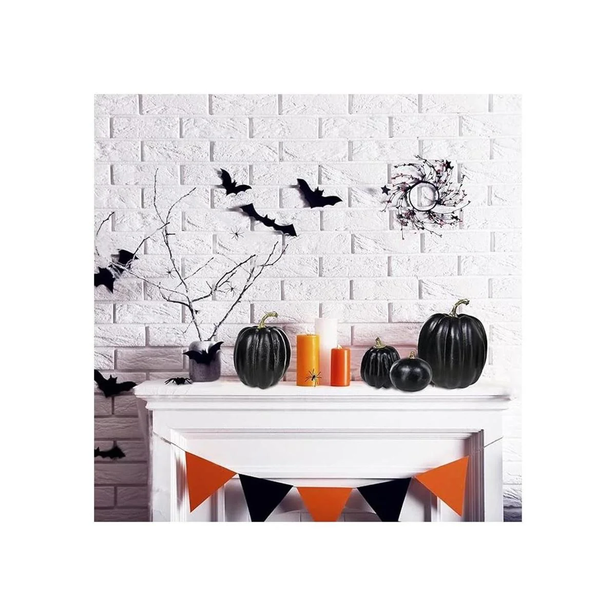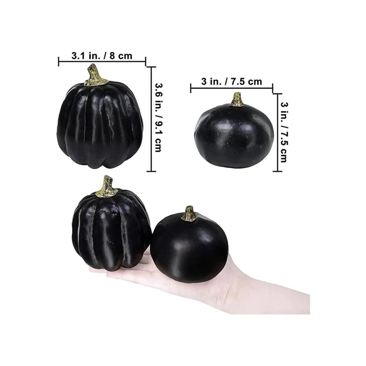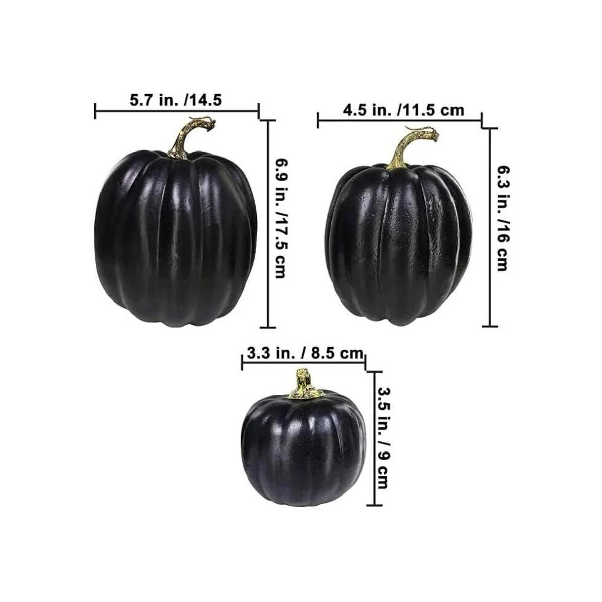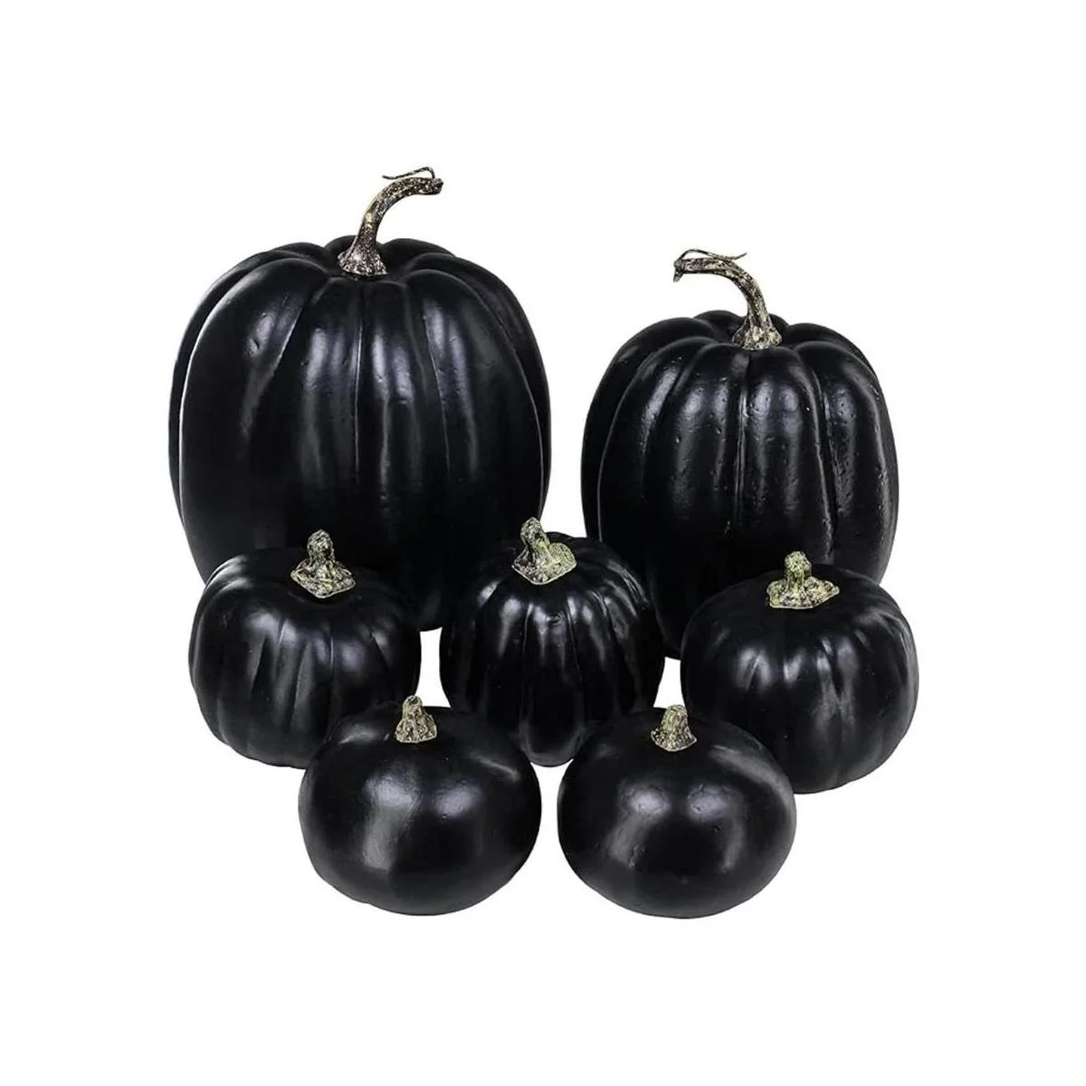 Cantidad: El paquete incluye 7 calabazas artificiales de color negro en varios tamaños. Este juego crea una elegante exhibición combinada con otras decoraciones de Halloween. También se verá impresionante para tu evento de Acción de Gracias y otras decoraciones temáticas de otoño.