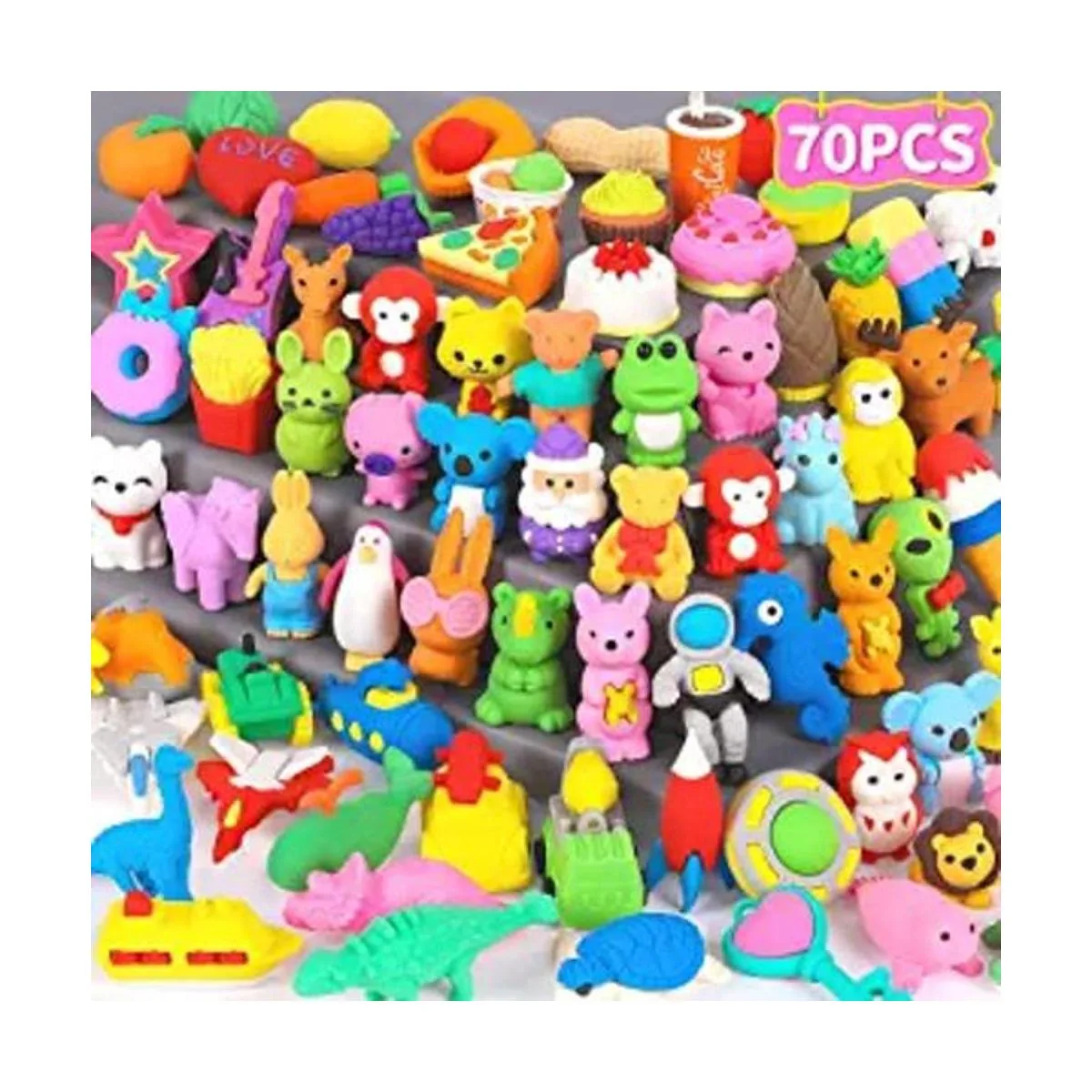 Paquete de 70 borradores de animales para niños, escritorio a granel para mascotas, premios de aula, juguetes de caja del tesoro para suministros de aula, rompecabezas 3D, mini borradores de lápices, suministros de regreso a clases para recuerdos de fiesta de niños aleatorio