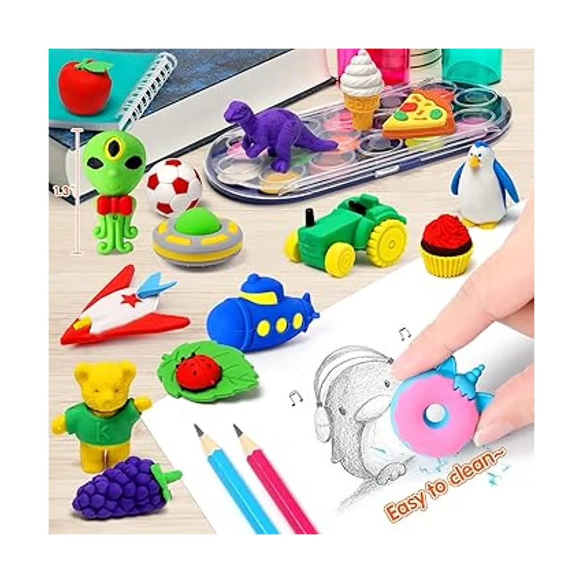 Colección de borradores variados: un gran número de borradores desmontables sin duplicado se puede dividir en diferentes series: animales, transporte, postres, verduras y frutas. Como panda, canguro, tigre, barcos, coches, cupcakes, pizza, zanahoria, limón, cohete, alienígena, etc. Muchos tipos de borradores son una buena opción para coleccionistas de borradores, un gran éxito con los niños