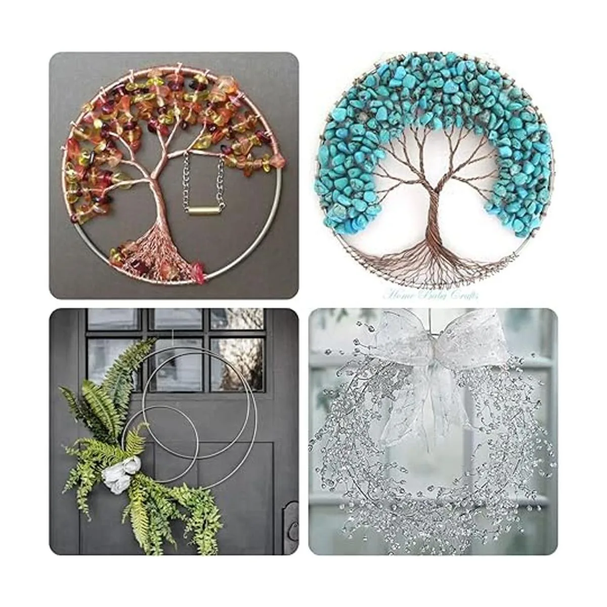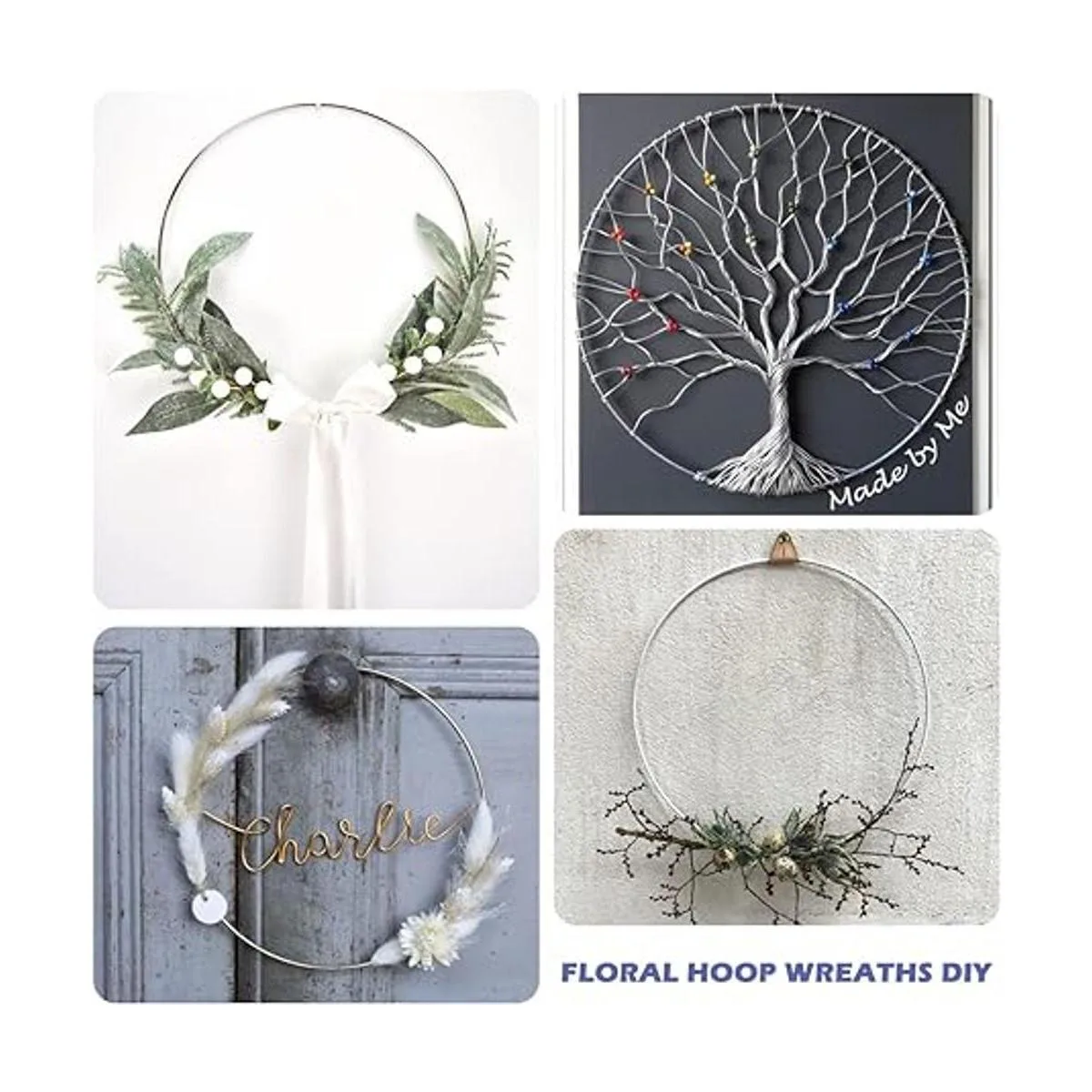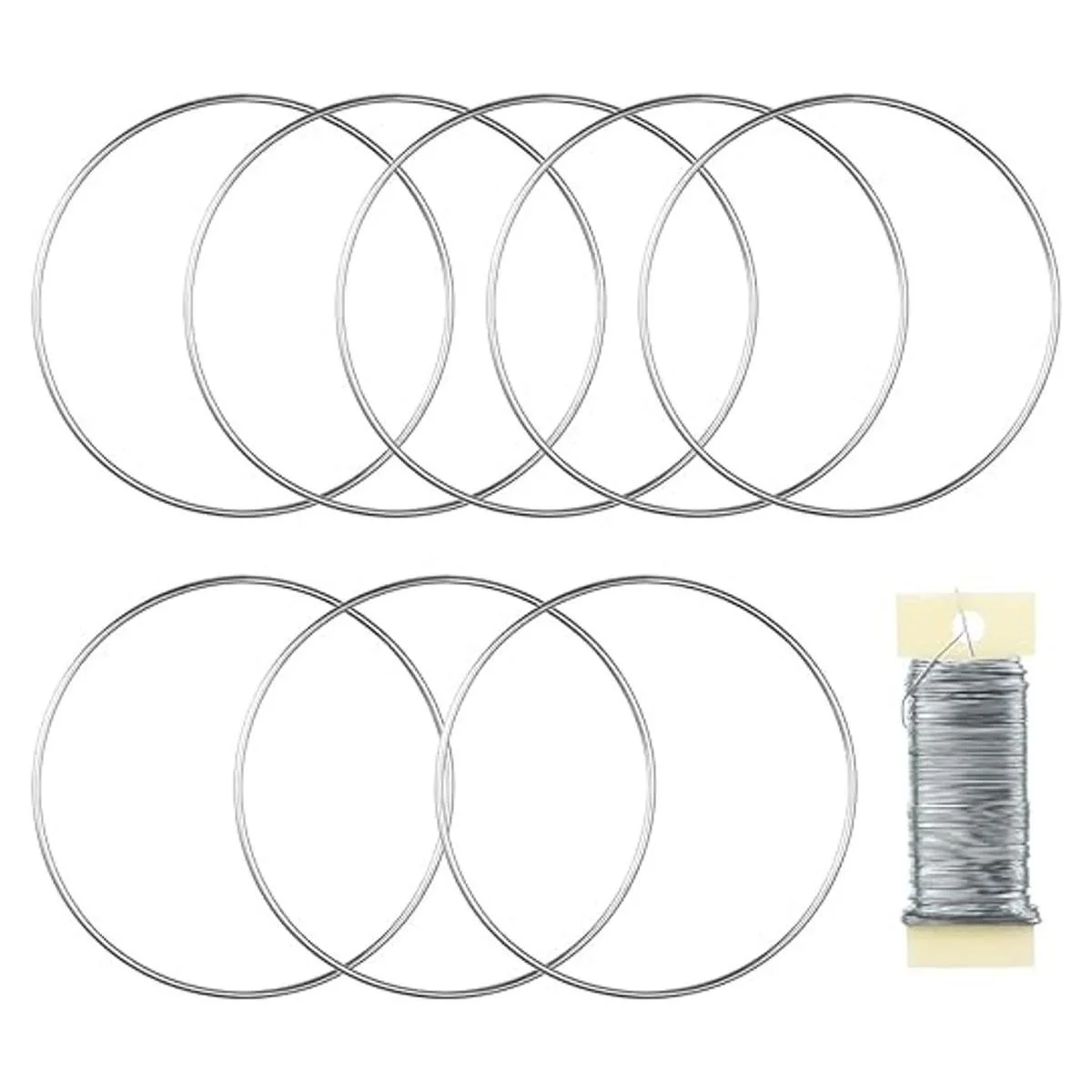 Juego de 8 piezas: el paquete viene con 8 aros de metal para manualidades y alambre de paleta plateado de calibre 22 de 38 yardas. Gran combo para tus manualidades de corona de aro floral.