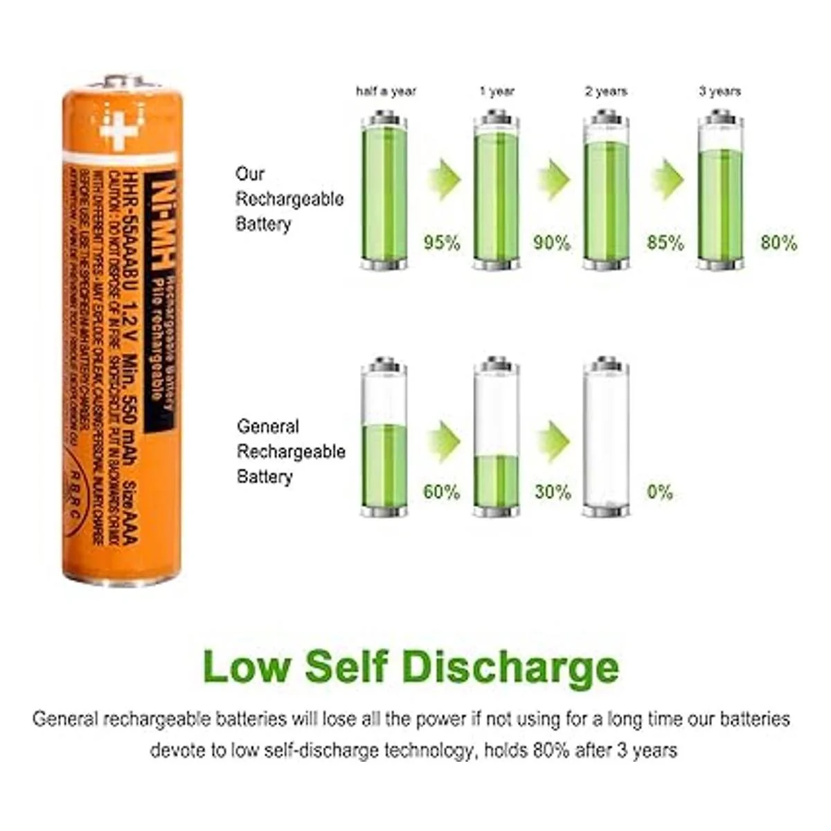 Paquete de 8 baterías recargables HHR55AAABU NIMH para Panasonic 1.2V 550mAh AAA para teléfonos inalámbricos