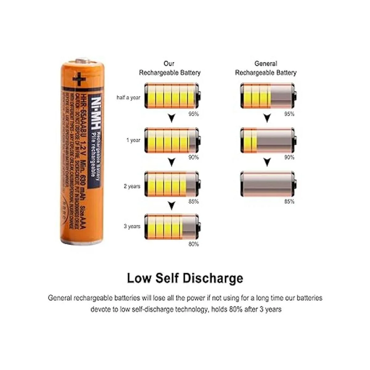 Paquete de 8 baterías recargables HHR65AAABU NIMH para Panasonic 1.2V 630mAh AAA para teléfonos inalámbricos