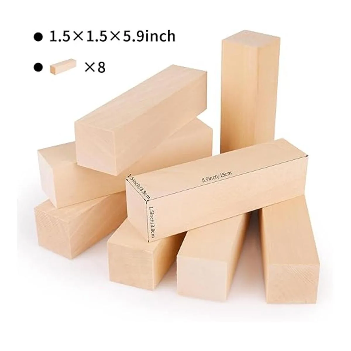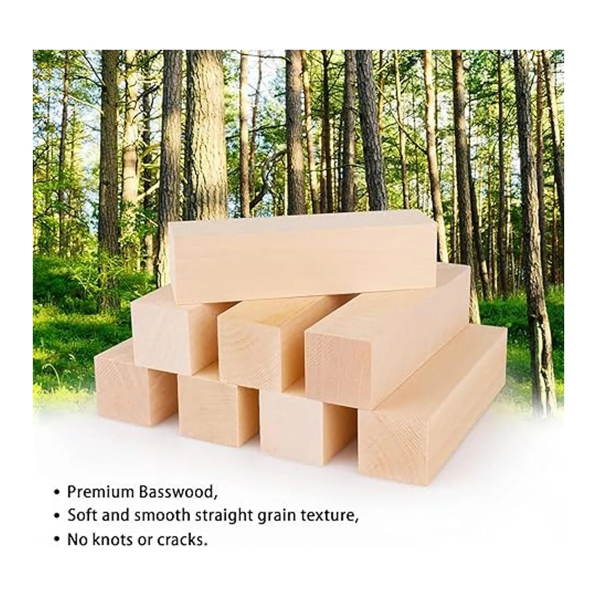 Juego de bloques de tallado de madera de tilo: el juego de madera de lubina incluye 8 bloques de tallado de 6 x 1.5 x 1.5 pulgadas. Es una gran opción no solo para principiantes, sino también para talladores de madera profesionales.