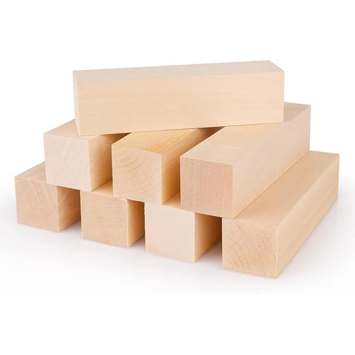 Paquete de 8 bloques de tallado de tilo de 6 x 1.5 x 1.5 pulgadas, kit de cubos de tallado de madera grandes para niños, adultos, principiantes o expertos, hogar, arte, manualidades, clase, suministros de bricolaje de Navidad