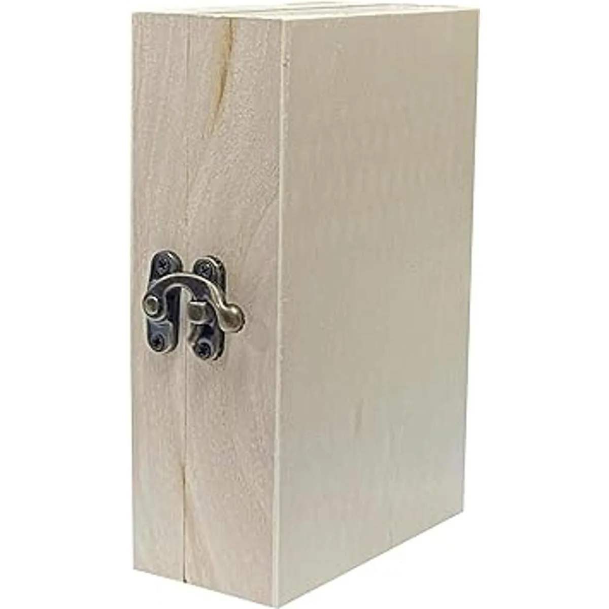 Caja de madera para manualidades: el gancho francés se fija en la caja como cerradura abordando el estilo clásico y la antigua moda occidental para tu proyecto de manualidades
