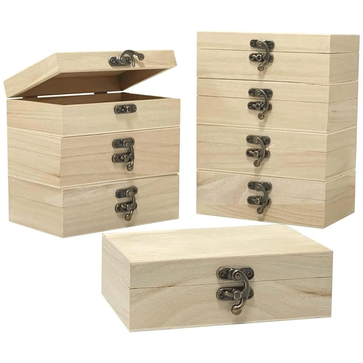 Paquete de 8 cajas de madera sin terminar de 6 x 4 x 2 pulgadas para manualidades, caja de recuerdo pequeña, caja de joyería de madera del cofre del tesoro