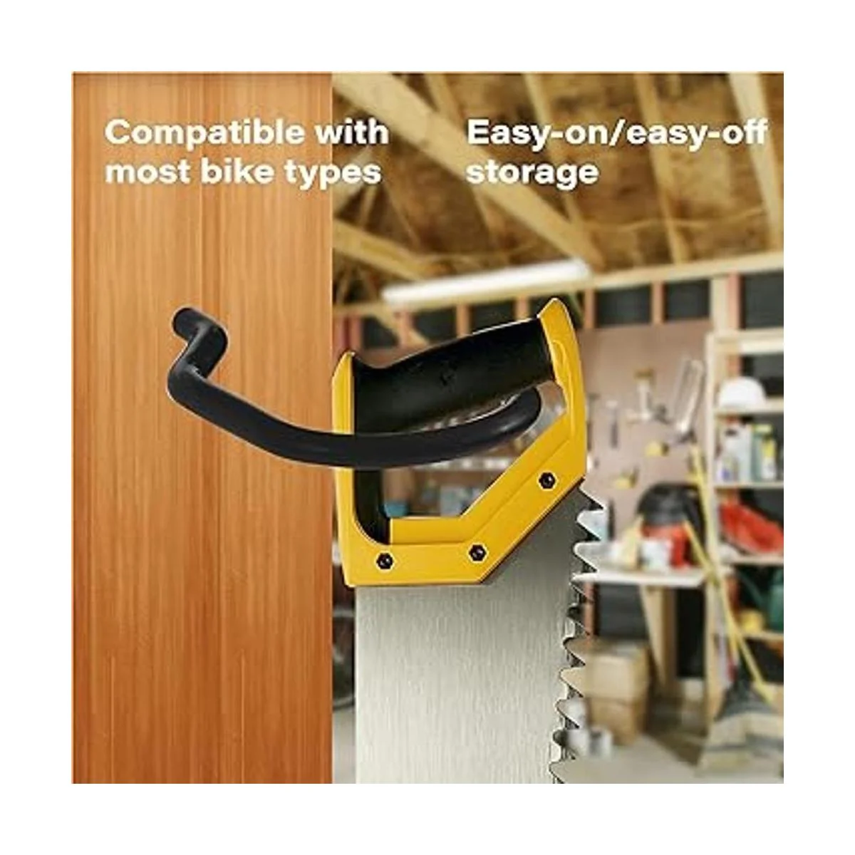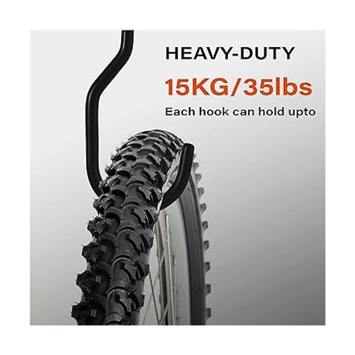 Soporte de pared para bicicleta. Tamaño total: longitud: 5.7 in, ancho: 2.7 in, el diámetro del alambre de hierro de los ganchos es de 0.236 in, más grueso que otros productos baratos, proporcionando el mejor rendimiento para el almacenamiento