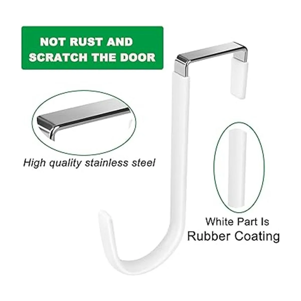 Material de alta calidad: nuestros ganchos para colgar sobre la puerta están hechos de acero de metal grueso con revestimiento de goma, que es resistente al óxido, suave y antideslizante, puede proteger el marco de la puerta y la ropa de arañazos durante el uso