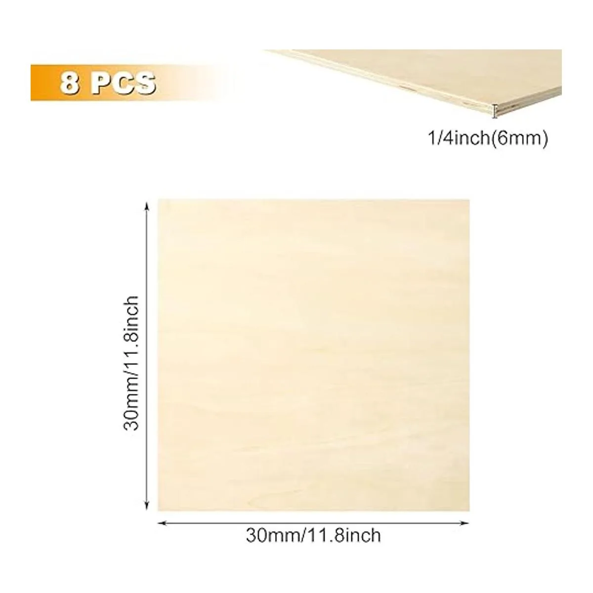 Paquete de 8 hojas de madera de tilo de 11.8 x 11.8 pulgadas, hojas de madera contrachapada cuadradas de 14 pulgadas de grosor, hojas de madera sin terminar para manualidades, proyectos de bricolaje, mini edificio de casa, modelo arquitectónico para hacer proyectos de láser de combustión de madera