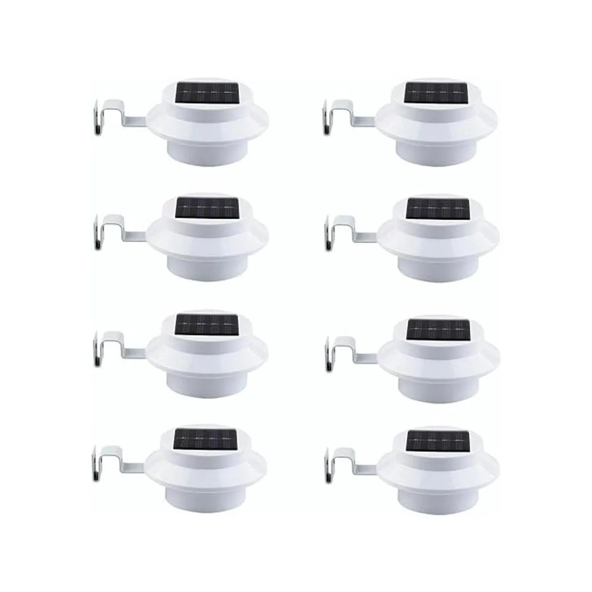 Paquete de 8 luces LED FALOVE para canalón solar para exteriores, luz de seguridad de uso nocturno inteligente con energía solar blanca