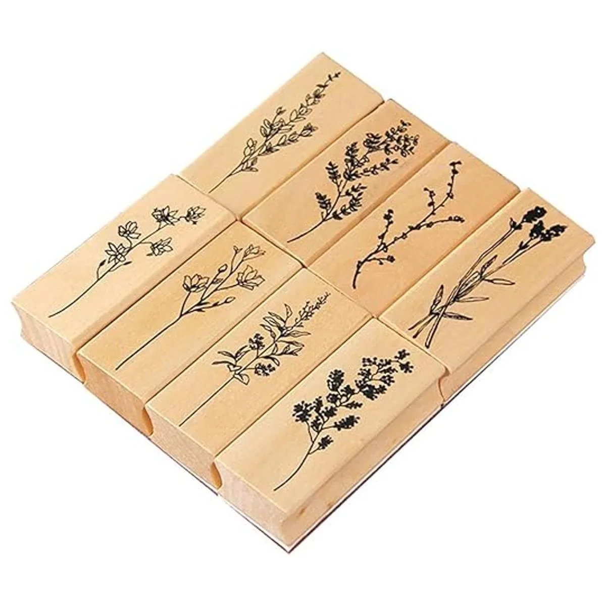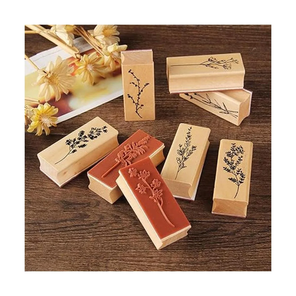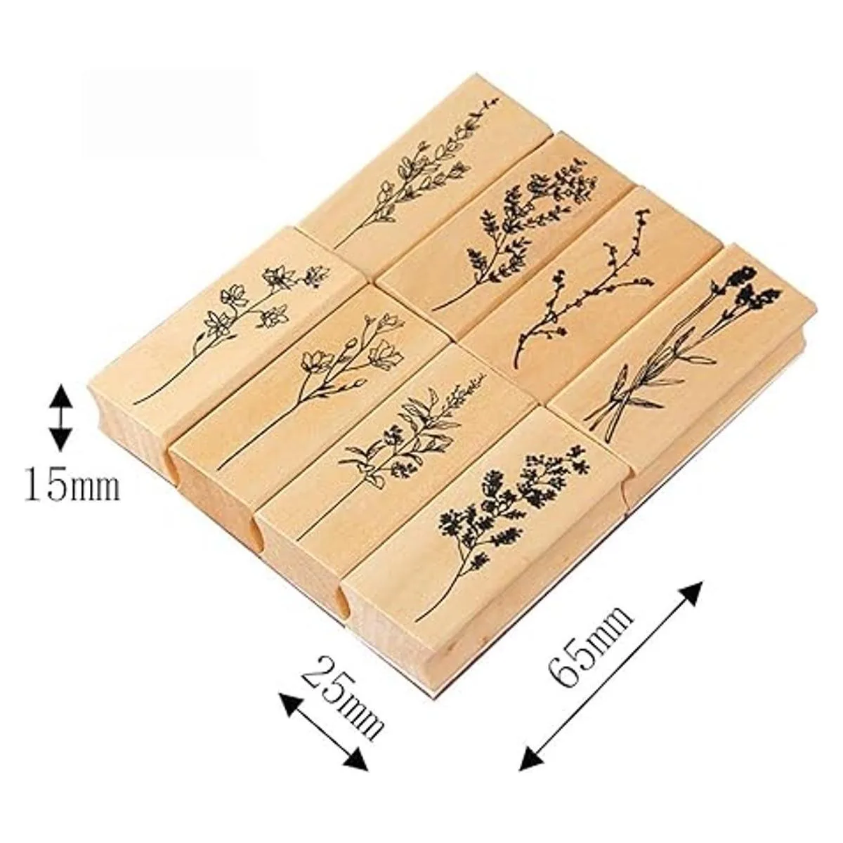 Paquete de 8 sellos de goma de madera con forma de planta y flor de 2.5 x 1 x 0.6 pulgadas para tarjetas de manualidades y álbum de fotos (8 piezas de plantas y flores02)