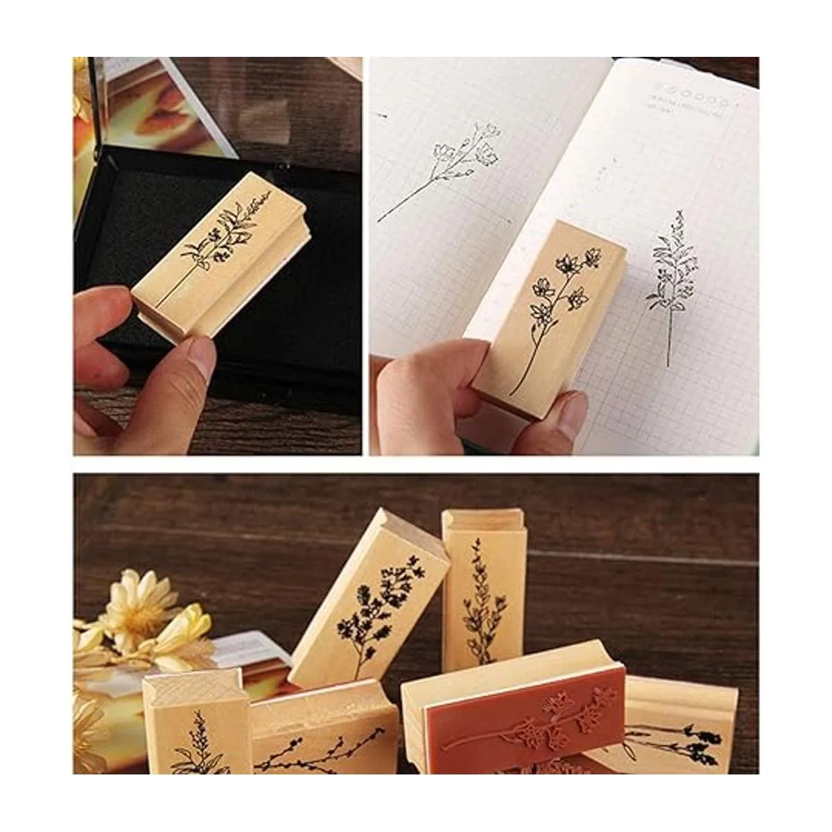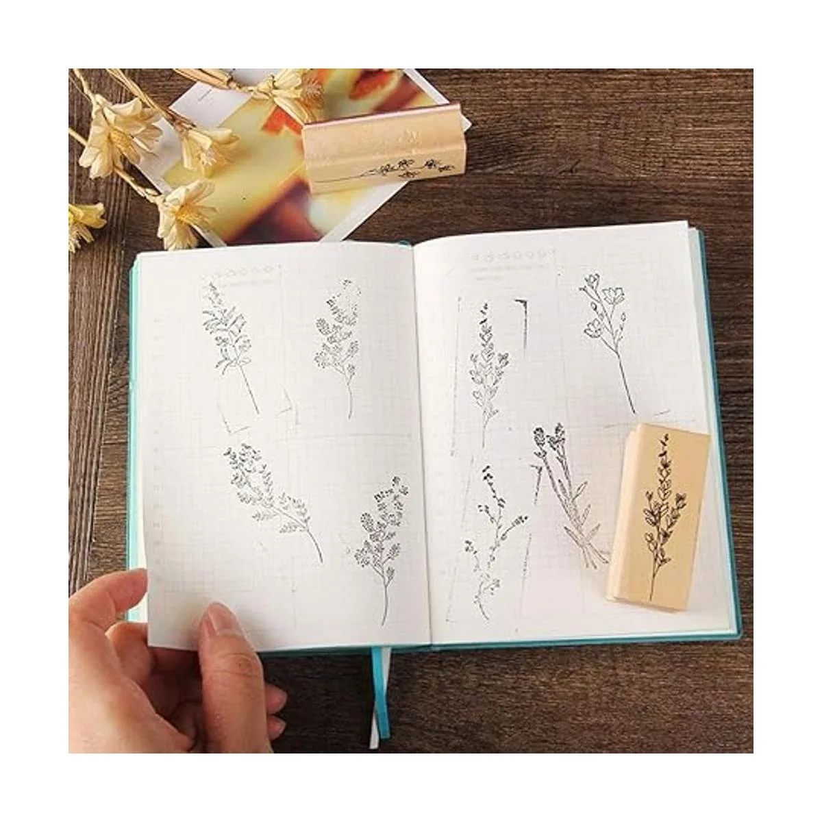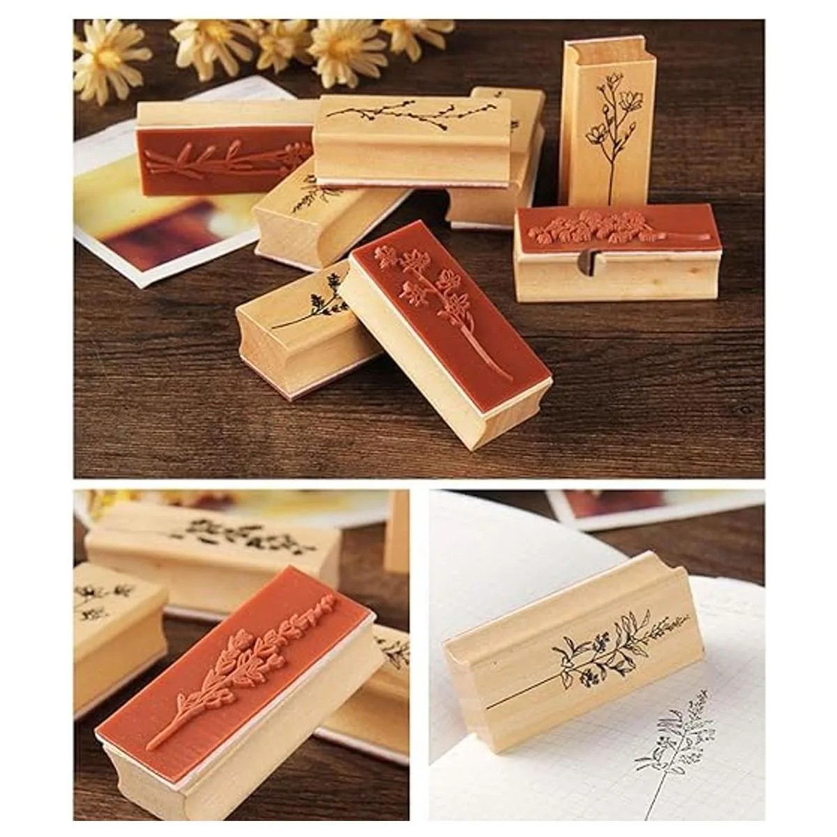Paquete de 8 sellos de goma de madera con forma de planta y flor de 2.5 x 1 x 0.6 pulgadas para tarjetas de manualidades y álbum de fotos (8 piezas de plantas y flores02)