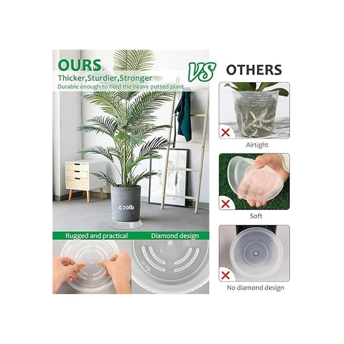 Más gruesos, resistentes y duraderos: nuestros platillos para macetas están hechos con materiales reciclables de alta calidad, utilizando tecnología avanzada para aumentar la resistencia y el grosor en comparación con los platillos tradicionales. Con nuestras características anticaídas, antisol, anticaídas, antiroturas y durabilidad, puedes estar en el conocimiento de que tu platillo de olla nunca se romperá ni se deformará. Atrapa el desbordamiento de agua y tierra para mantener tus muebles y suelos limpios.