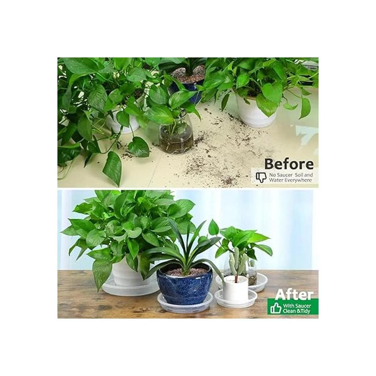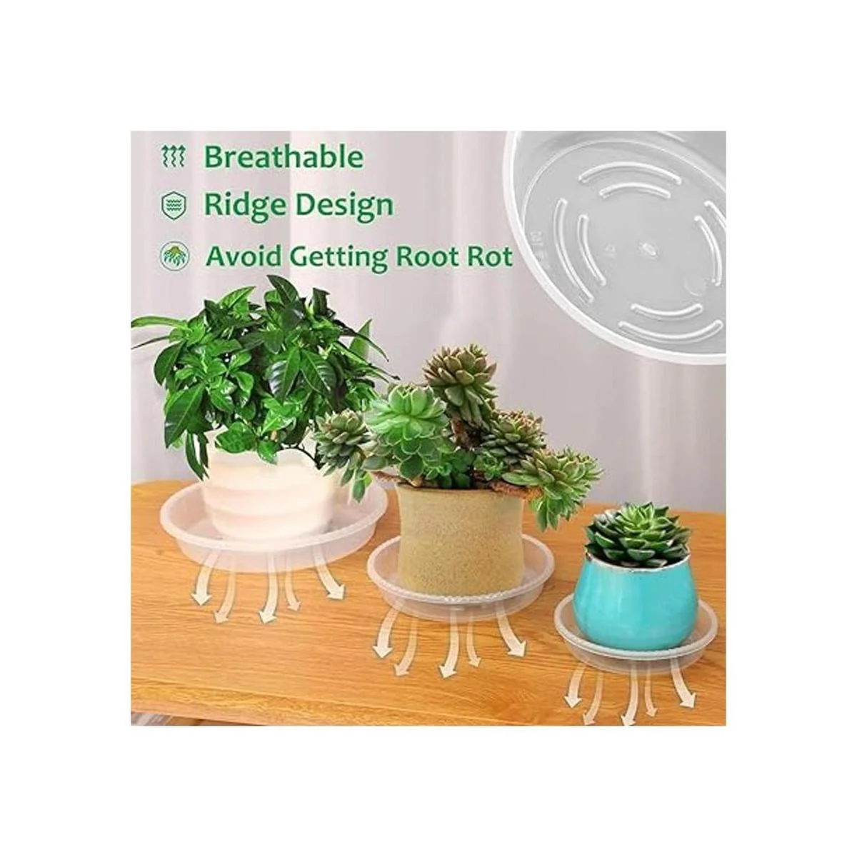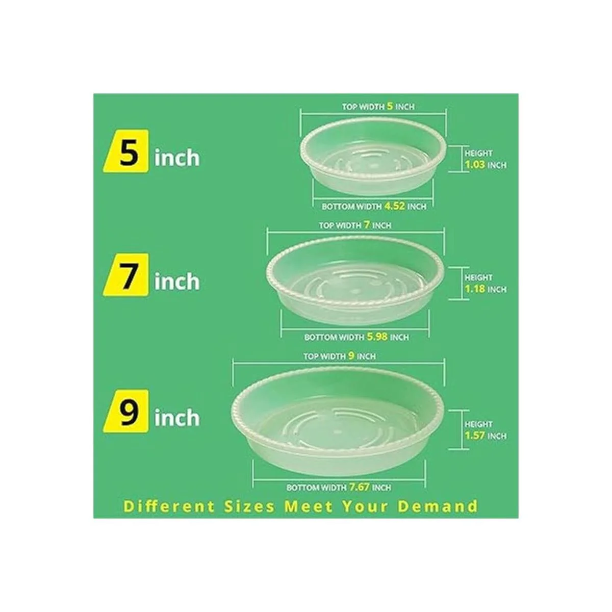 Gran capacidad y ventilación: nuestro diseño de cresta fomenta un mayor flujo de aire en los platillos de plástico transparente para plantas, promoviendo el crecimiento y evitando la putrefacción de la raíz. Al mismo tiempo, la gran capacidad y el diseño del platillo ayudan a almacenar el suelo y la humedad, con su aspecto transparente proporcionando una brillante observación visual del agua restante y ayudando a prevenir fugas.