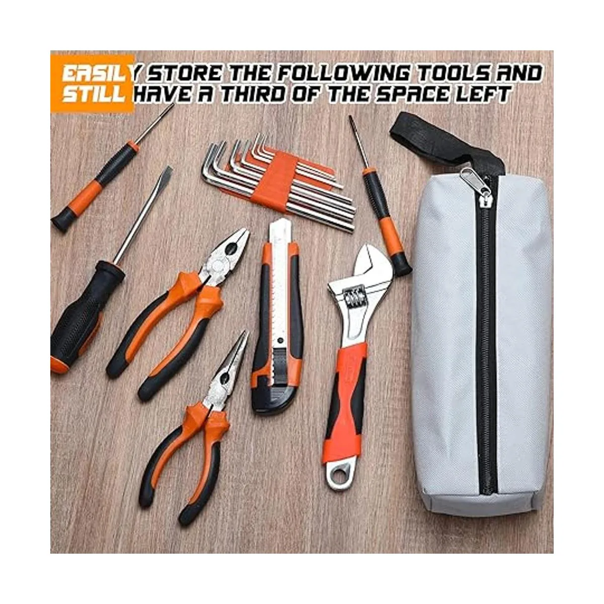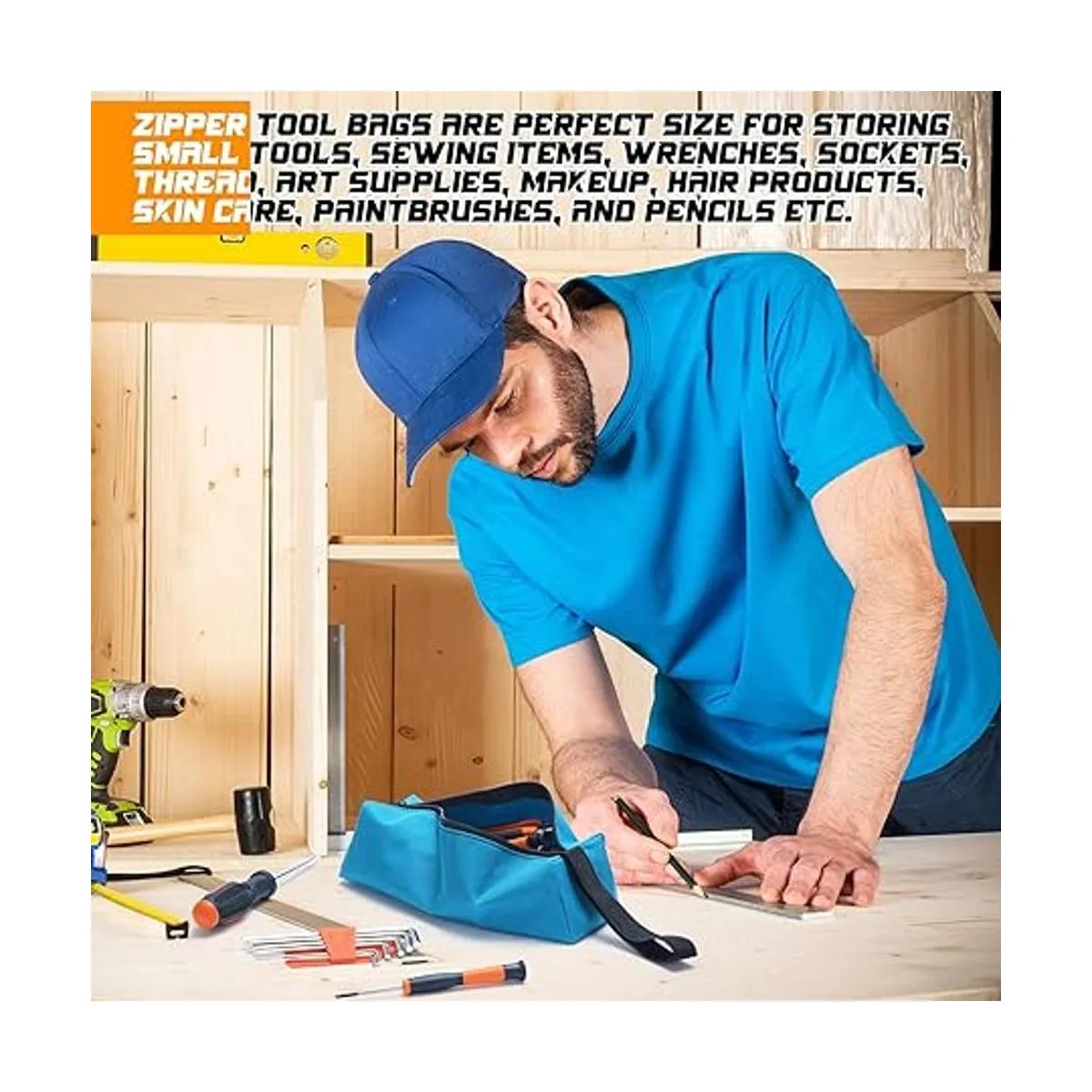 Tamaño portátil: el tamaño de la bolsa de herramientas pequeña con cremallera es de 9.8 x 3.3 x 2.7 pulgadas largo x ancho x alto, el tamaño pequeño y ligero es conveniente para que lo lleves cuando sales, puede almacenar y administrar eficazmente tus herramientas; el mango ensanchado te permite levantarla fácilmente