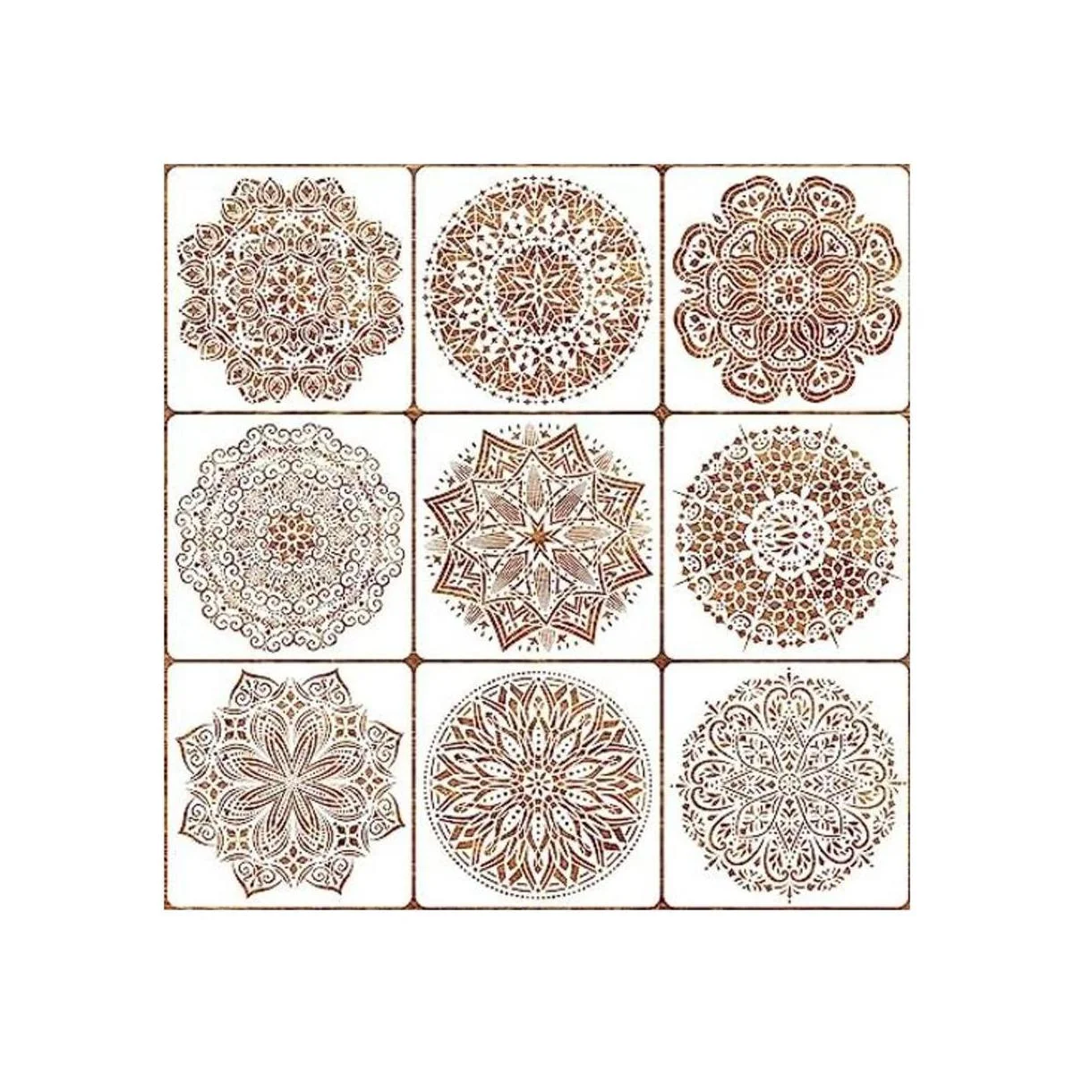 Paquete de 9 plantillas de mandala de 12 x 12 pulgadas para pintar en madera, pared, suelo, tela de azulejos, plantillas de muebles reutilizables para pintar
