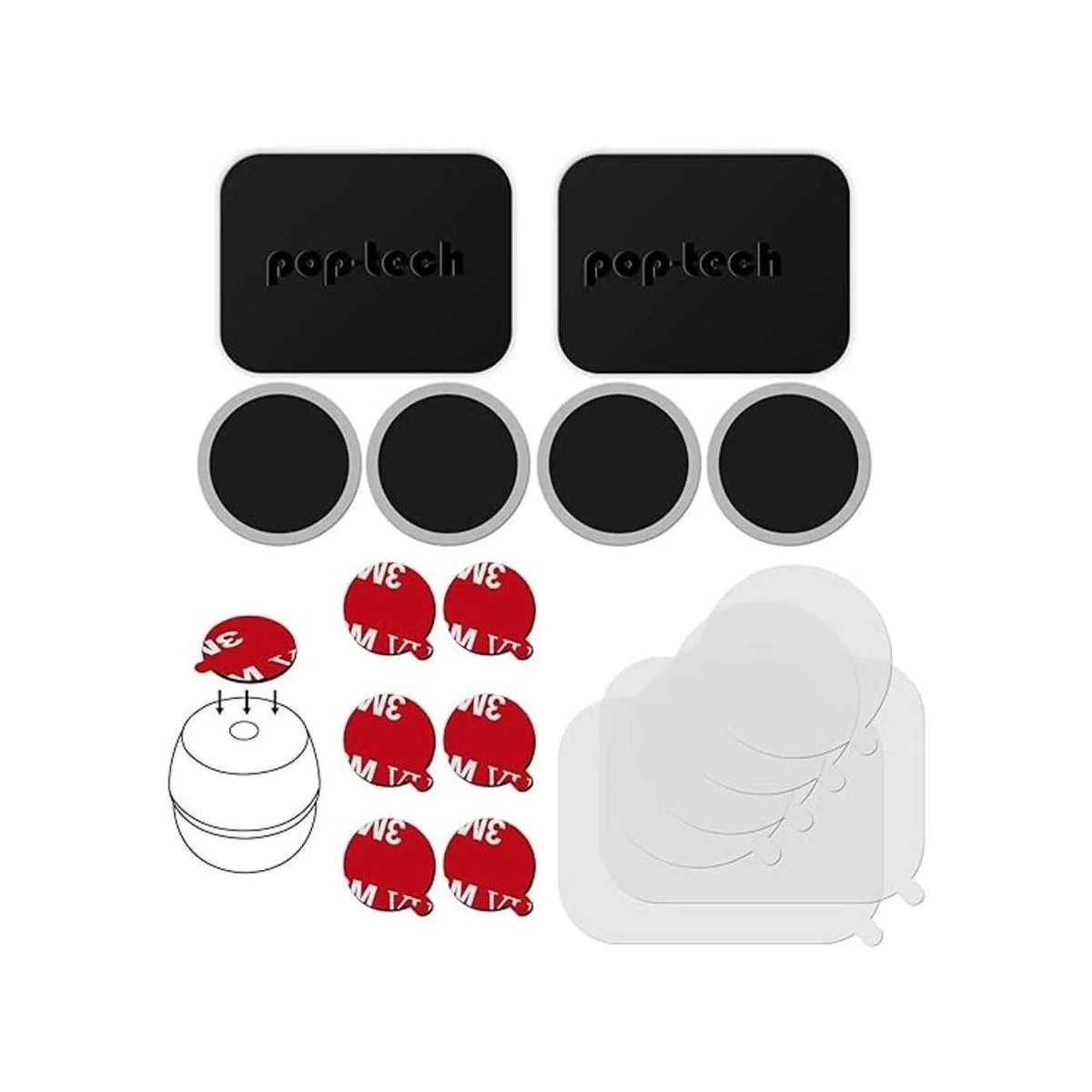 Paquete de accesorios adhesivos 3M de repuesto para adhesivos poptech para montaje magnético de coche y base de montaje de agarre, incluye placa de metal rectangular y placa mágica redonda, películas protectoras