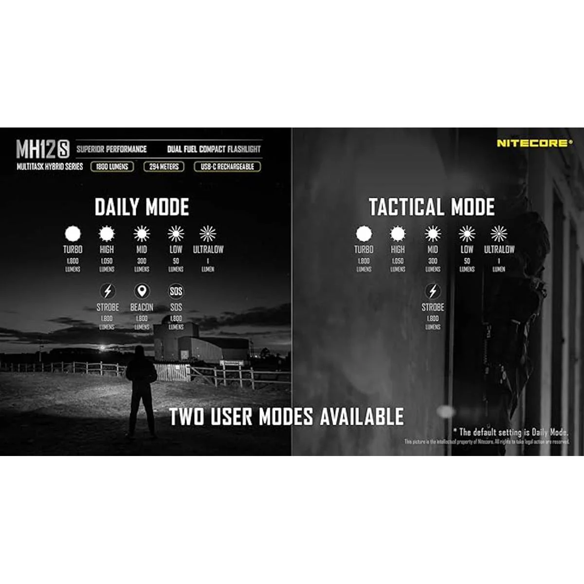 Paquete de batería dual NITECORE MH12SNL2150 MH12S Paquete de linterna recargable de 1800 lúmenes con dos baterías de 5000 mAh y caja de batería LumenTac