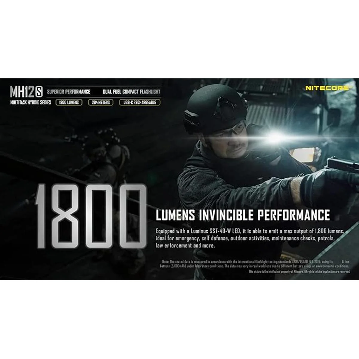 Linterna táctica de alto rendimiento: salida de 1800 lúmenes, más de 321 yardas de lanzamiento, y 1500 horas de tiempo de funcionamiento en ultra bajo. Un compañero verdaderamente indispensable para el transporte diario, trabajo, patrulla o para acampar y senderismo.