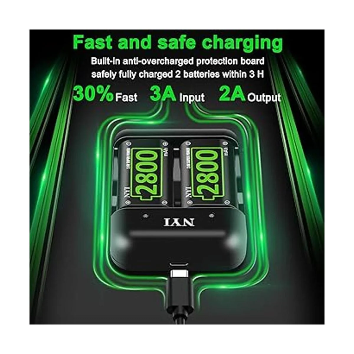 Baterías NiMH de gran capacidad: batería recargable de más de 100 horas para Xbox One/Xbox Series X/Xbox One S/Xbox One X/Xbox One Elite controlador recargable de 4 baterías recargables de alta potencia de 2800 mAh con cargador.