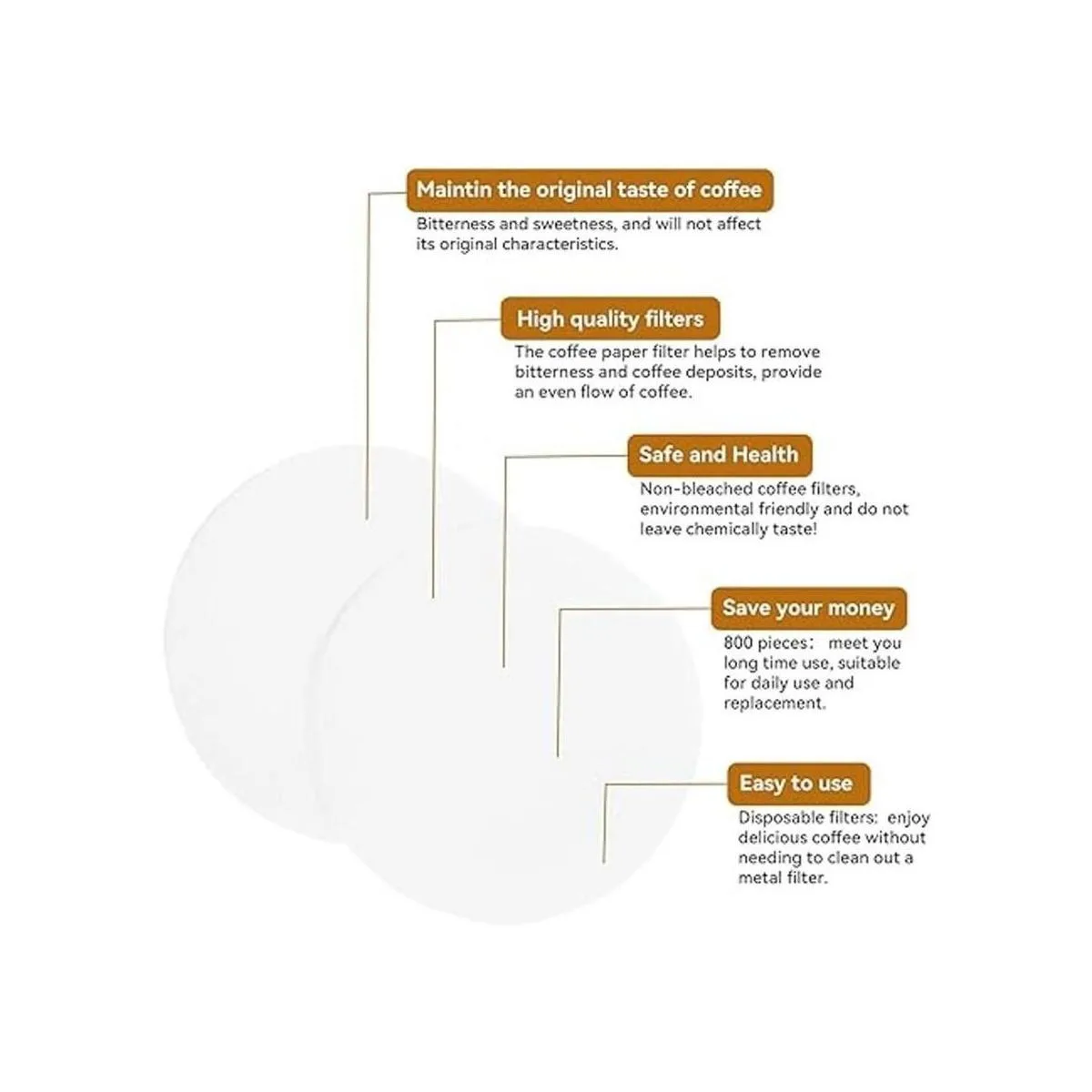 800 piezas en paquete: recibirás 800 filtros de café de papel sin blanquear, cantidad suficiente para satisfacer un uso prolongado, adecuado para el uso diario y reemplazo. Simplemente disfruta del café con tu familia o amigos