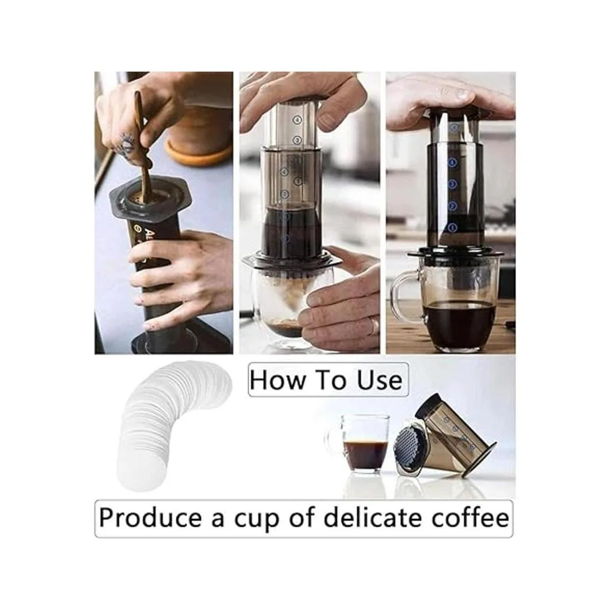 Compatible con: estos filtros de papel de café de repuesto son compatibles con Aerobie Aeropress Coffee y Espresso. Los filtros funcionan muy bien para filtrar el café. Y los filtros desechables significan que puedes disfrutar de un delicioso café sin necesidad de limpiar un filtro de metal.
