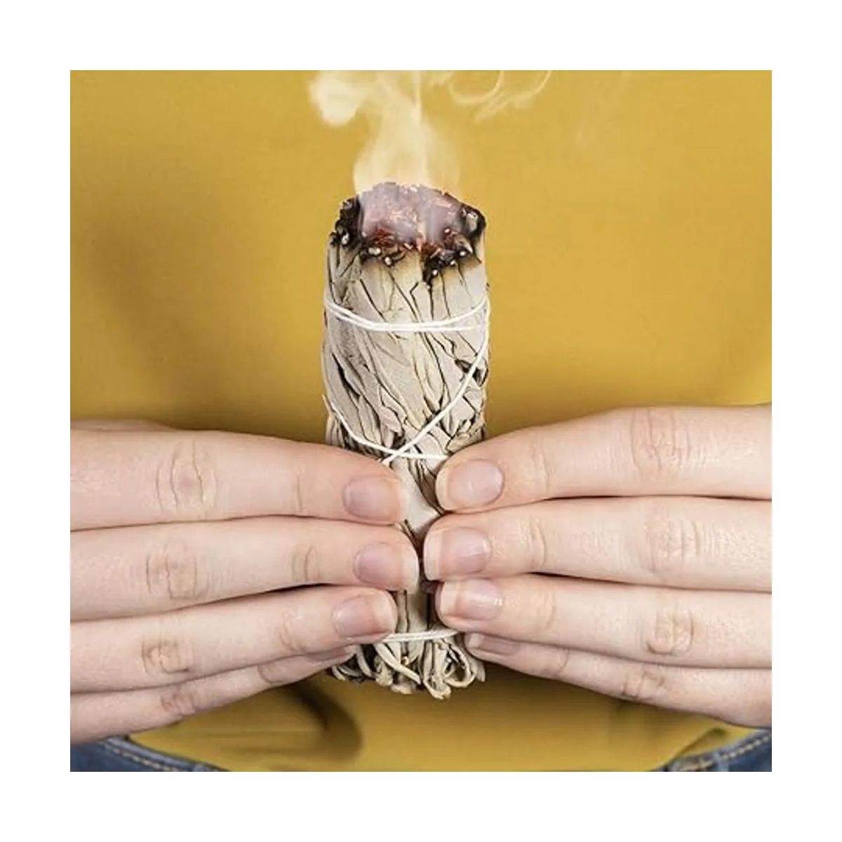 Cómo usar: mantén el paquete en un ángulo de 45 grados y enciende con un cerrojo o encendedor. Deja que se queme durante unos segundos y luego sopla suavemente. Debes dejarte con un pequeño sendero continuo de humo. Agita el humo alrededor de tu casa para limpiar las energías negativas circundantes e invitar a la paz al espacio. Para alargar el tiempo de combustión, sopla suavemente las brasas
