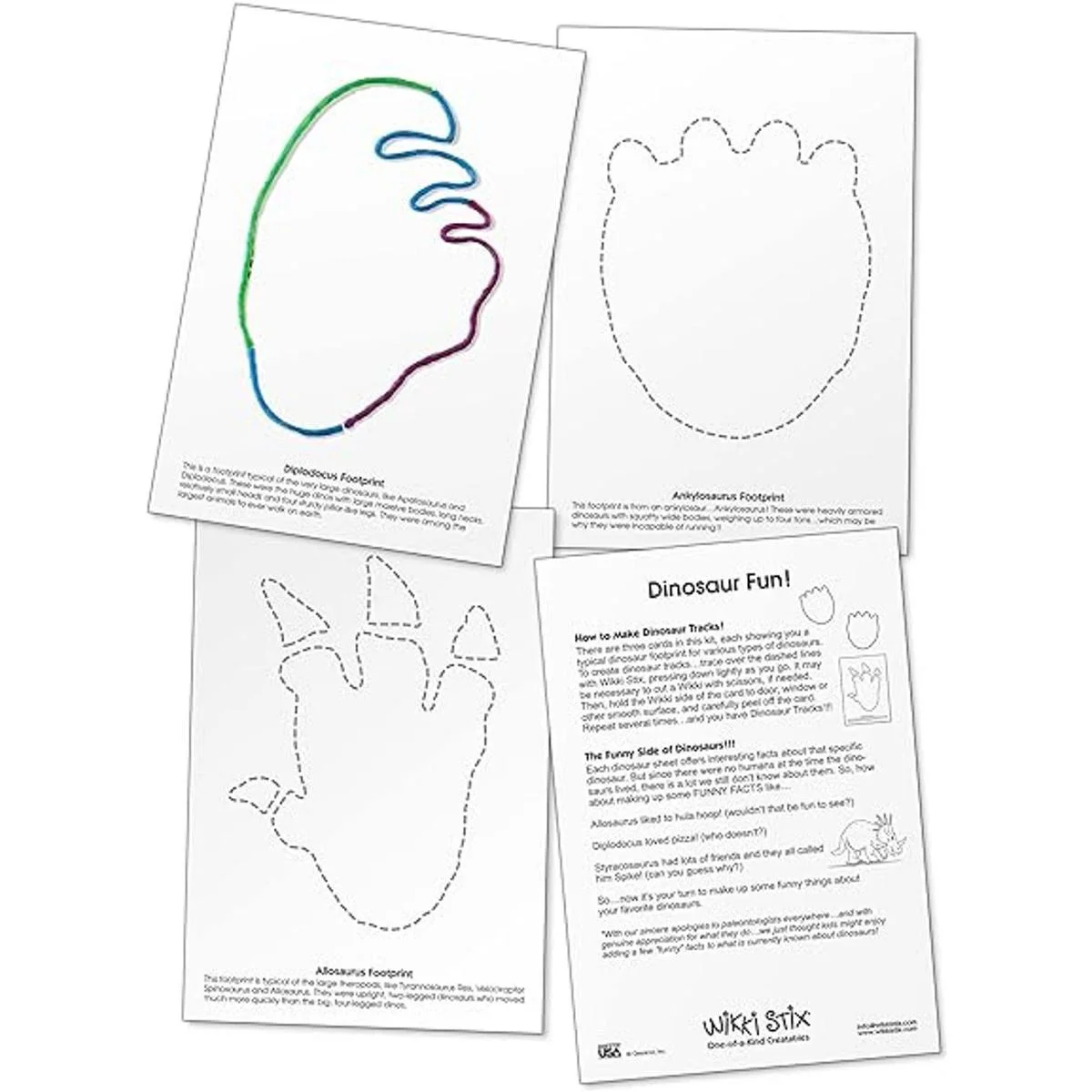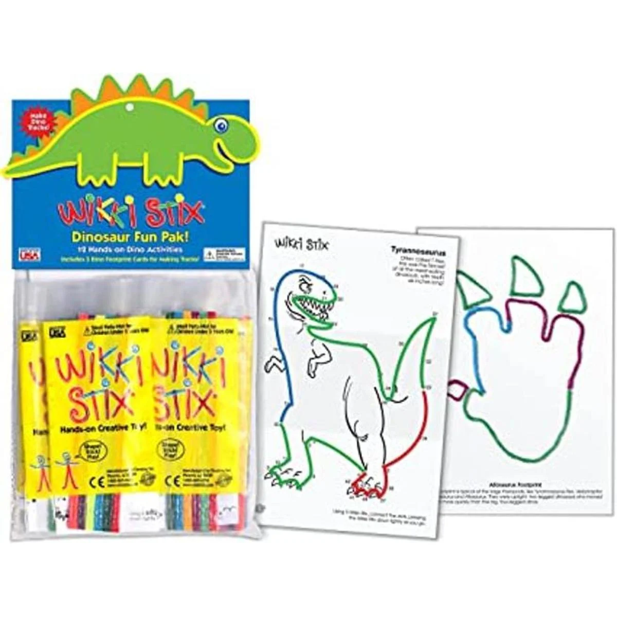 12 paquetes individuales, cada uno con dinosaurio genial para hacer y 12 Wikki Stix para usar Además de un paquete de adorable dinosaurio que eclosiona de su huevo