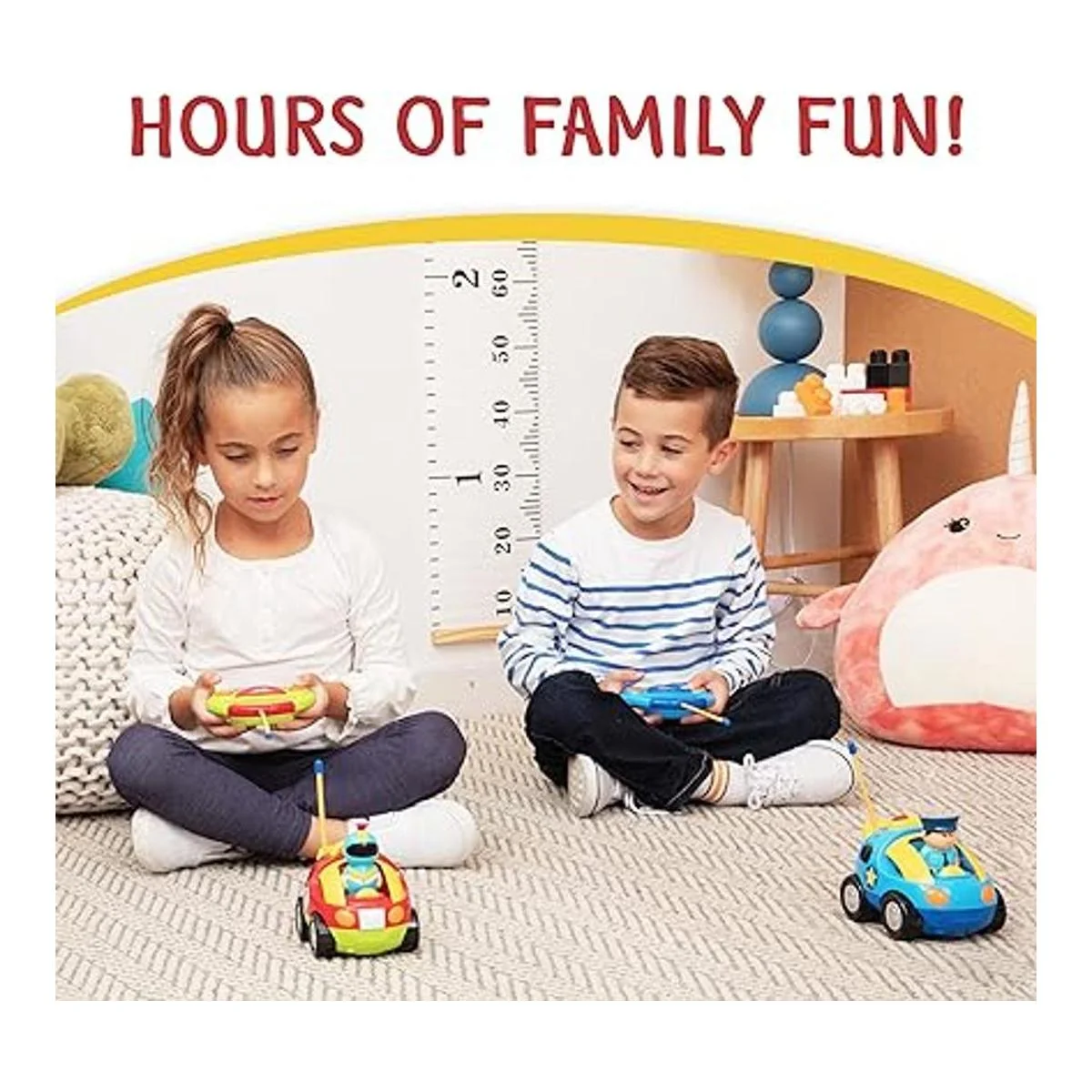 Paquete Prextex de 2 coches a radio control de dibujos animados de policía y de carreras. Juguetes a radio control para niños, cada uno con diferentes frecuencias de modo que ambos pueden competir juntos