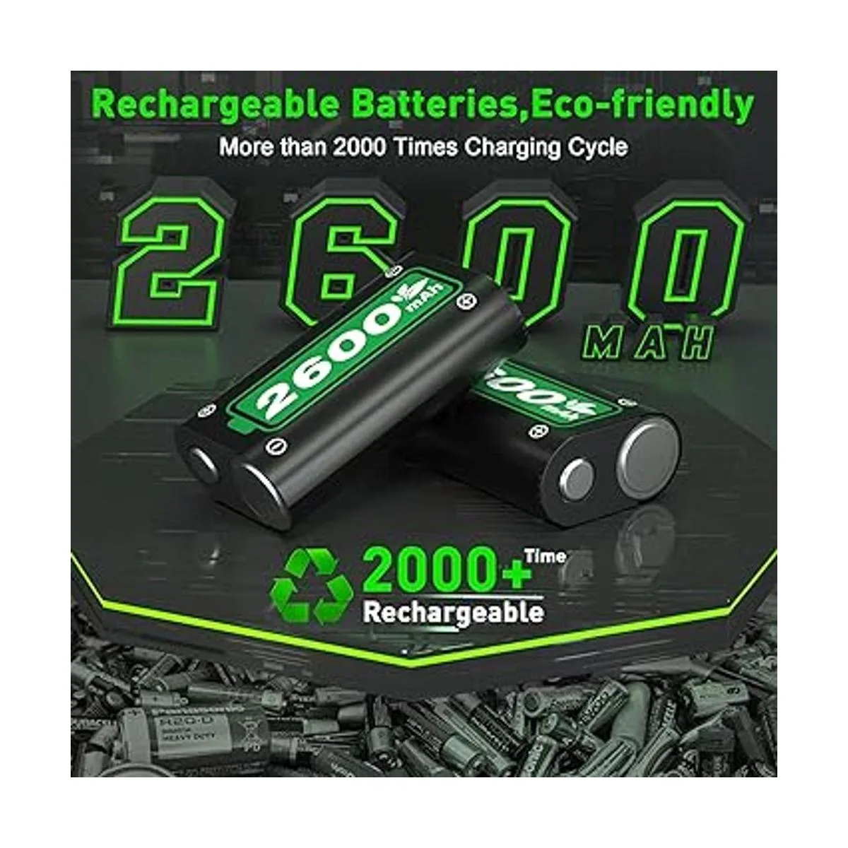 Gran capacidad: 2 baterías recargables de 2600 mAh que proporcionan hasta 28 horas de tiempo de funcionamiento