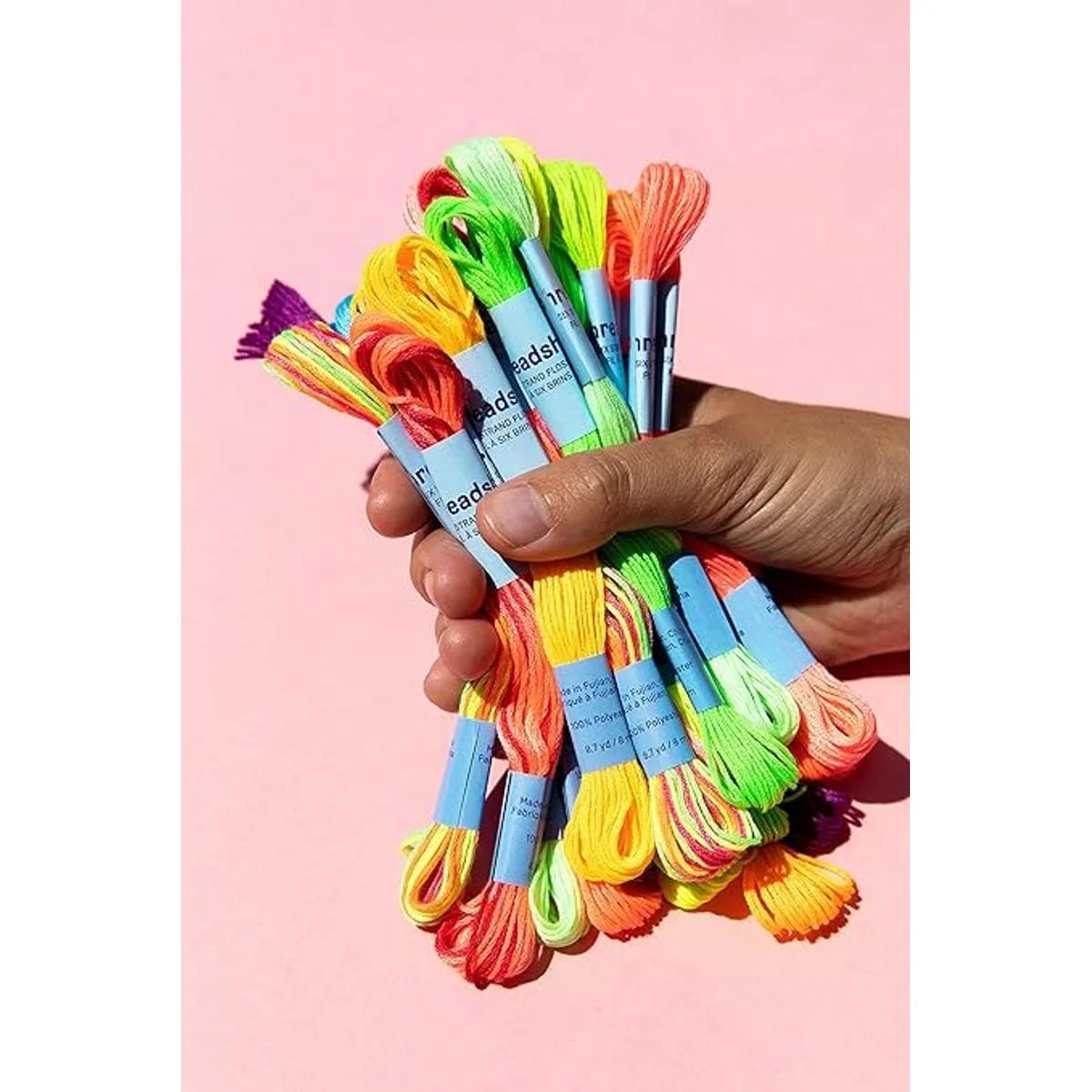El paquete de hilo de neón Prism está hecho con 100 algodón mercerizado y contiene 8.7 yardas por madeja