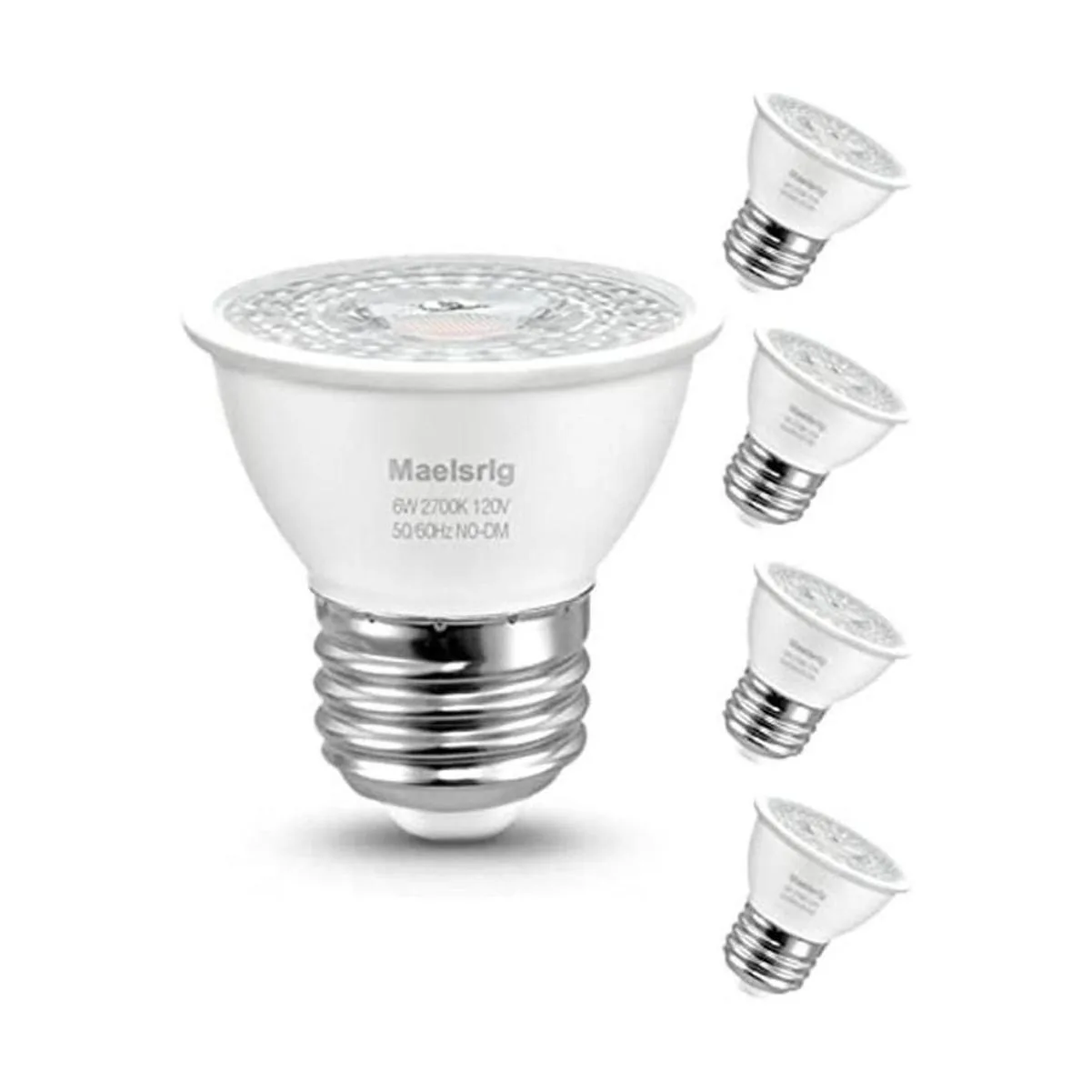 PAR16 Foco LED empotrable de cuello corto, 6 W equivalente a 60 W, bombilla de gabinete Curio, sin parpadeo, 600 lúmenes, blanco suave 2700 K, base media E26, no regulable, paquete de 4