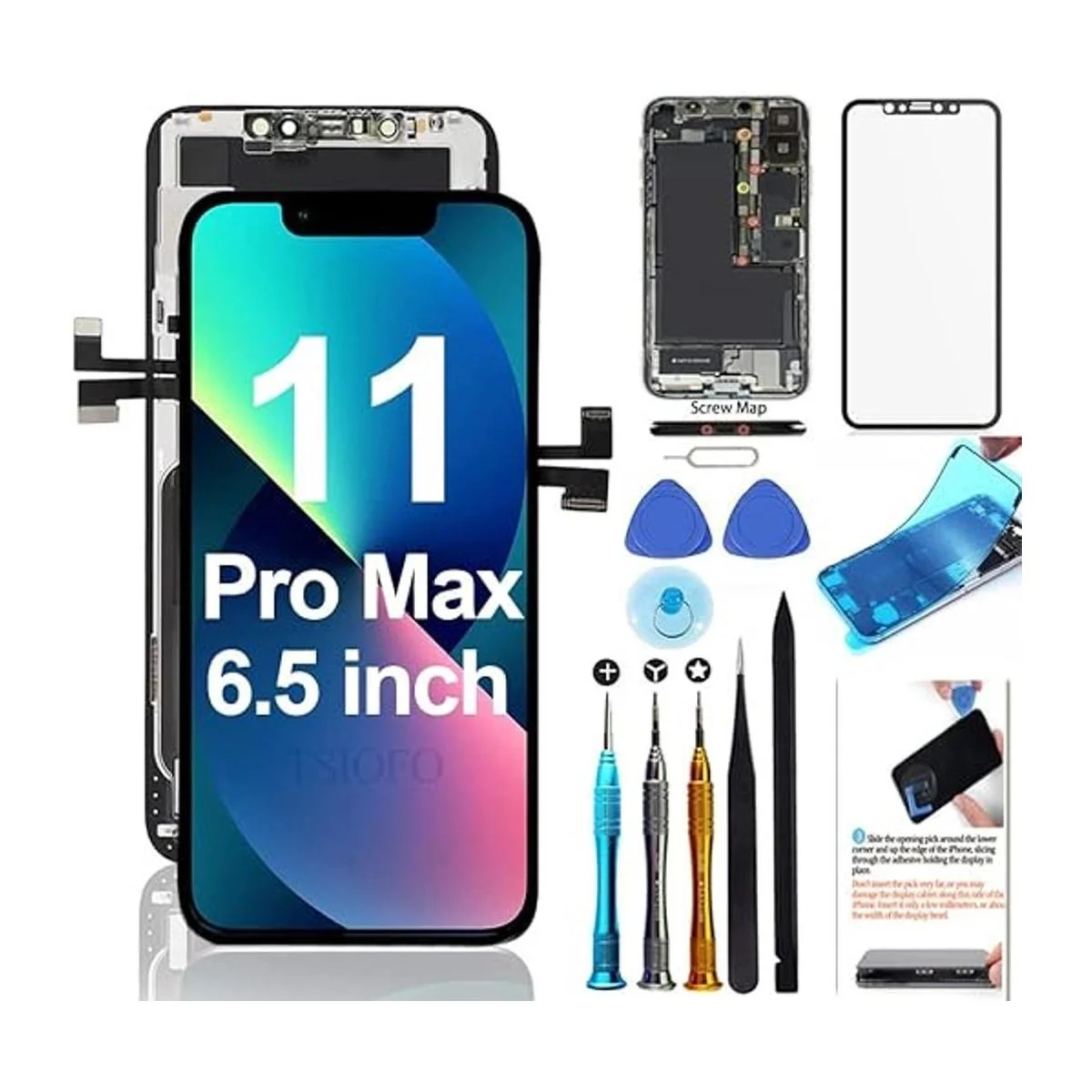 para iPhone 11 Pro Max Pantalla LCD de 6.5 pulgadas, pantalla LCD 3D Touch Digitalizer Frame Kit de reparación completo con herramientas de reparación, protector de pantalla, instrucciones idioma español no garantizado