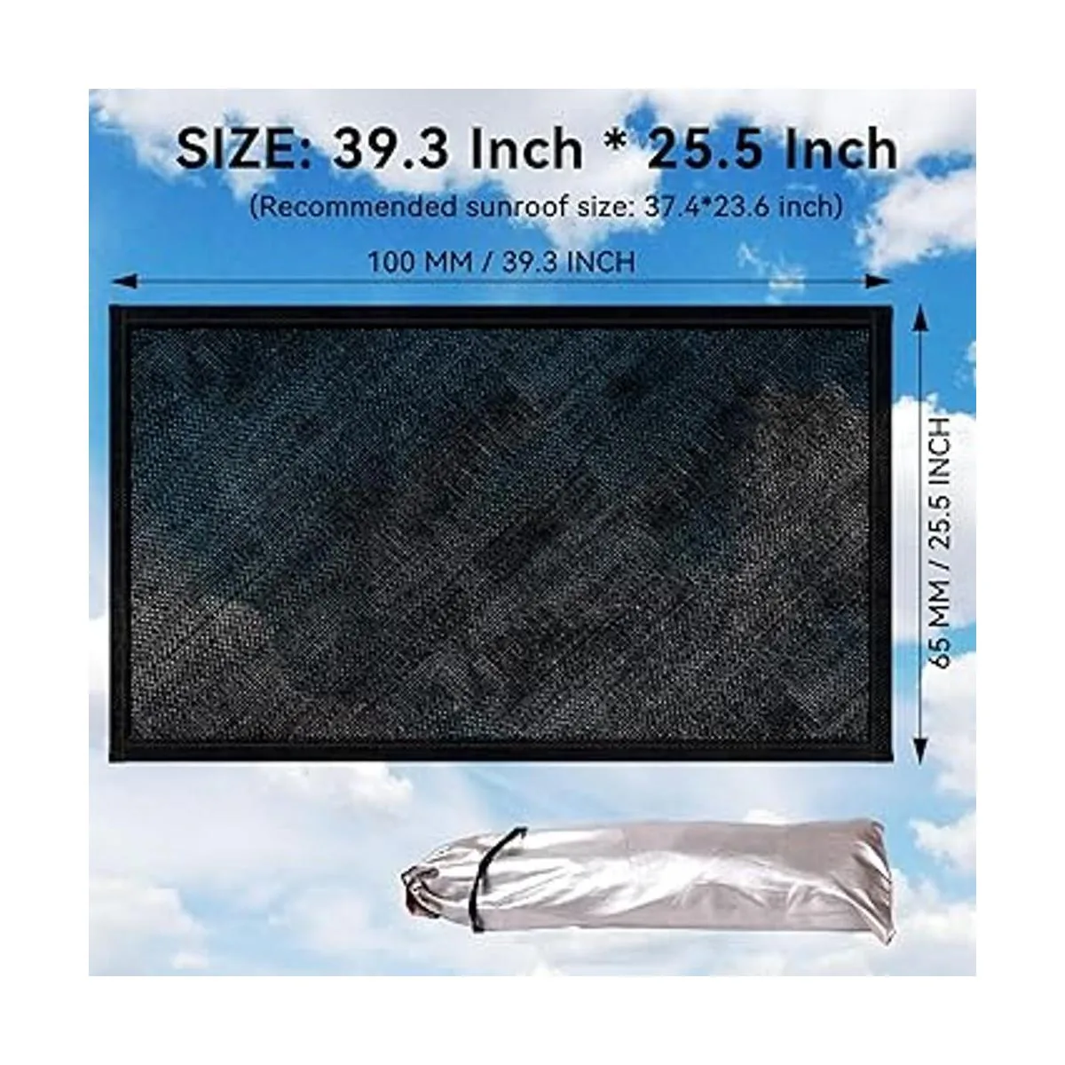 Tamaño del producto: 39.3 x 23.6 pulgadas largo x ancho. Tamaño recomendado del techo solar: 37.4 x 21.65 pulgadas largo x ancho. Adecuado para la mayoría de coches, SUV, MPV y otros techos de hierro. Quítatelo cuando conduces