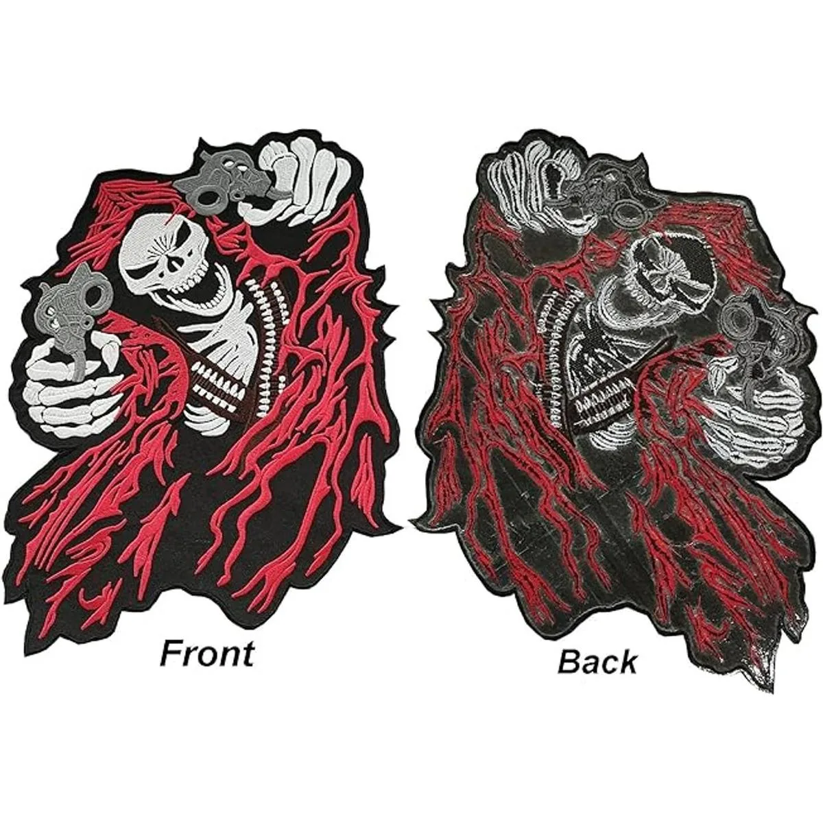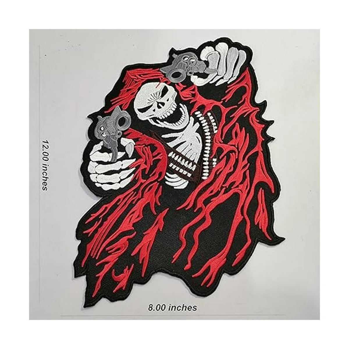 Parche bordado con diseño de calavera y mosca, dos pistolas, estilo hippie, de 12.00 x 8.00 pulgadas, con bordado para coser y planchar a la moda, chaqueta de motociclista, pantalones vaqueros, mochilas