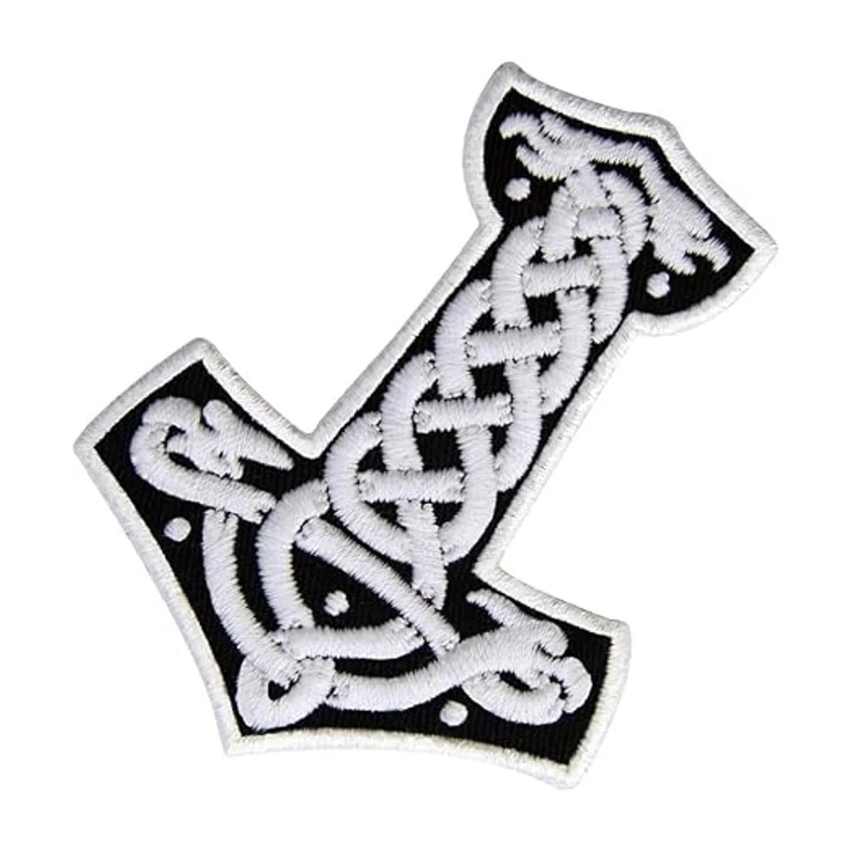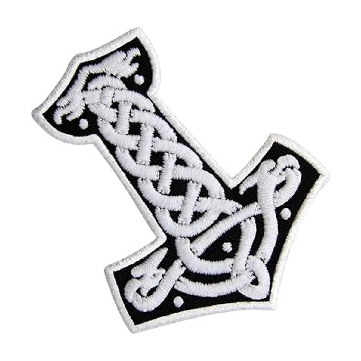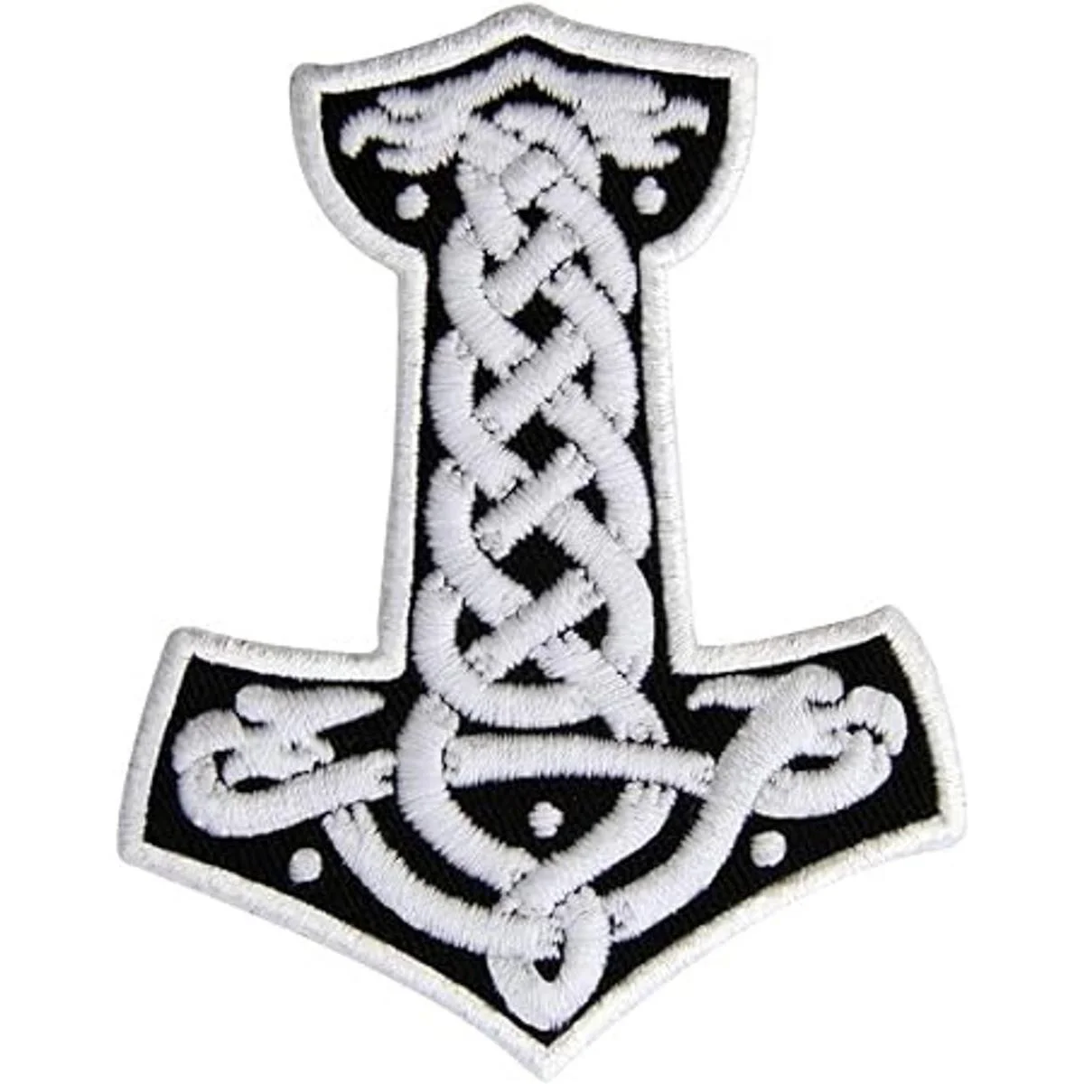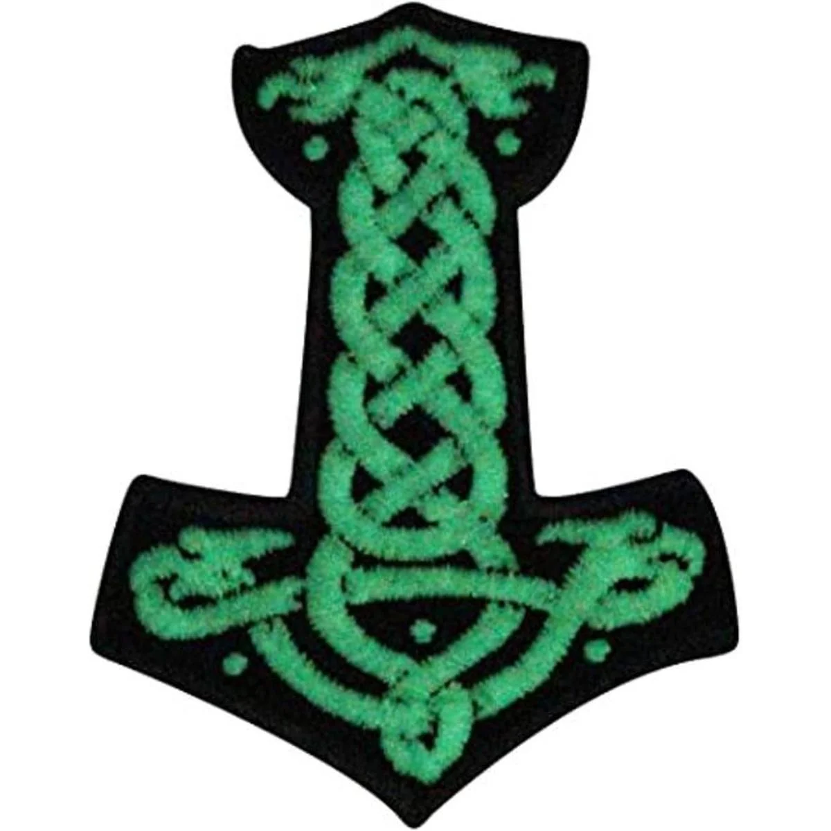 Parche bordado con diseño de martillo de Thor en Norse, con texto en inglés Glow in Dark Mjolnir The Hammer of Thor in Norse